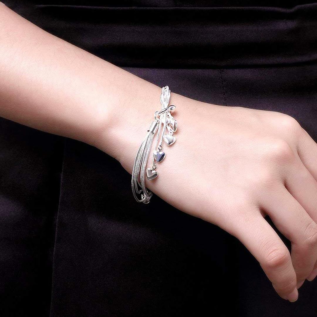 - Sparkling Lovely Charm Bracelet for women with adorable heart shaped hanging on the bracelet for girls Silver toned multi Layered attached in one Bracelet. Our Product is perfect for valentines Anniversary Birthday gift for girlfriend and Wife.