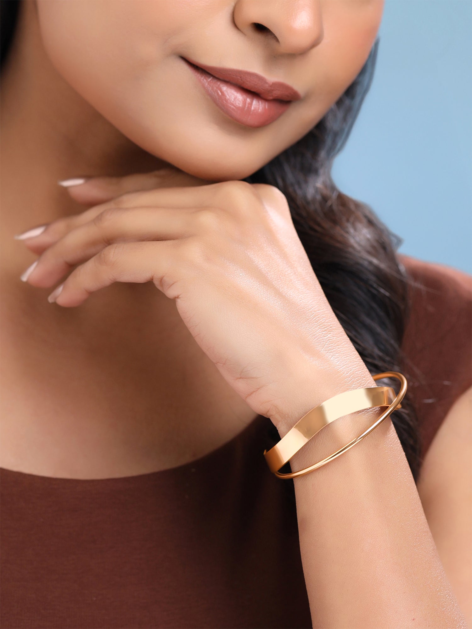 - Classic Gold Plated cuff bracelet for women with crafted work twisted Shaped Eye-catching look and Elegant. Intricate High Polish creates Glamorous Reflections. Our Product is perfect for valentines Anniversary Birthday gift for girlfriend and Wife.