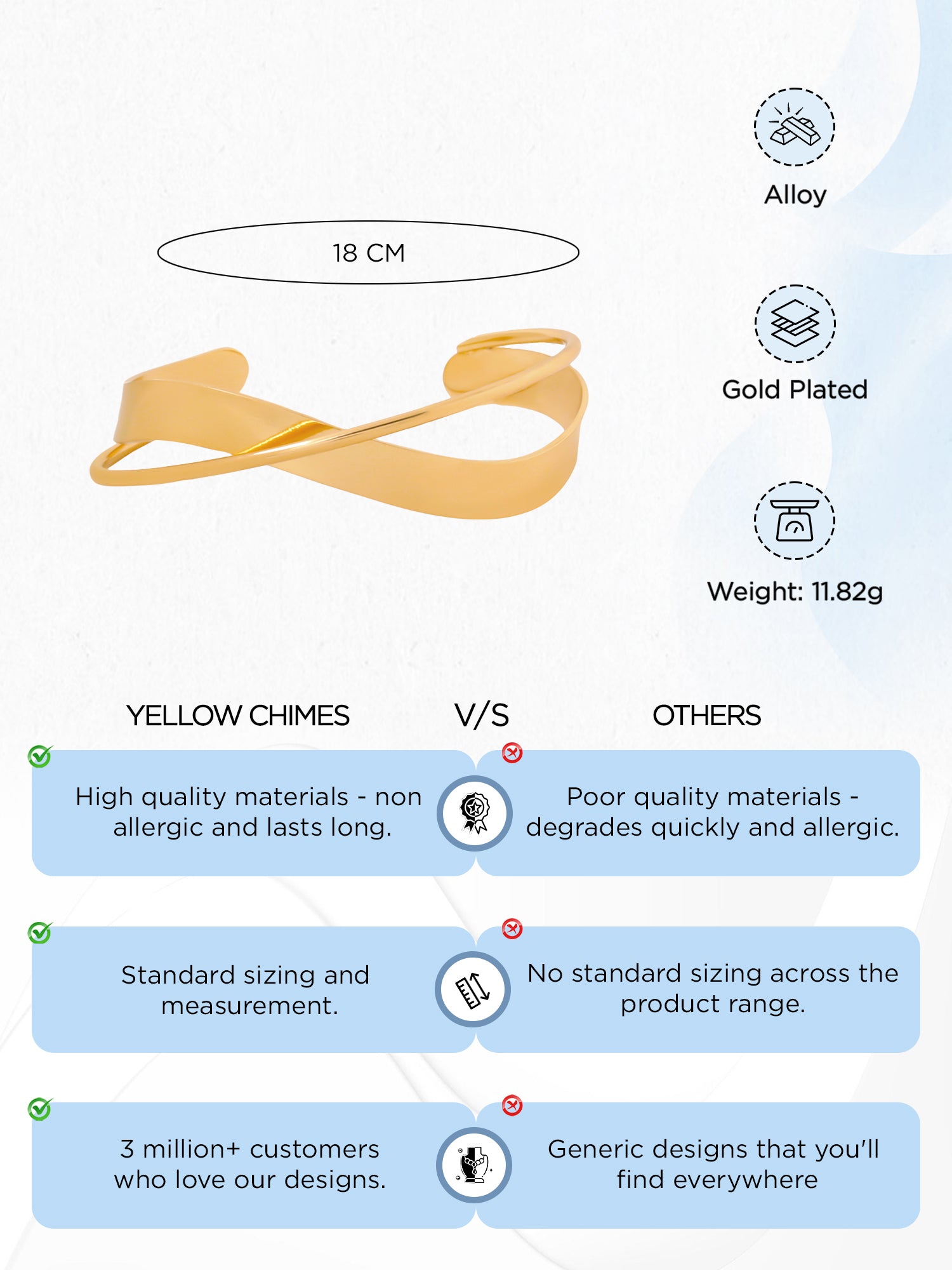 Yellow Chimes Bracelet for Women and Girls Fashion Golden Cuff Kadaa Bracelets for Women | Twisted Gold Plated Hand Cuff Kadaa Bracelet | Birthday Gift For Girls and Women.