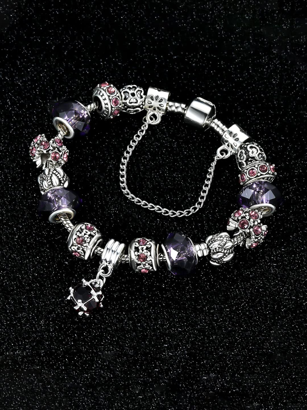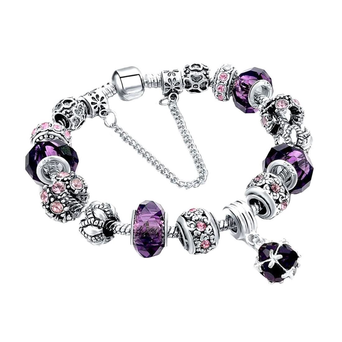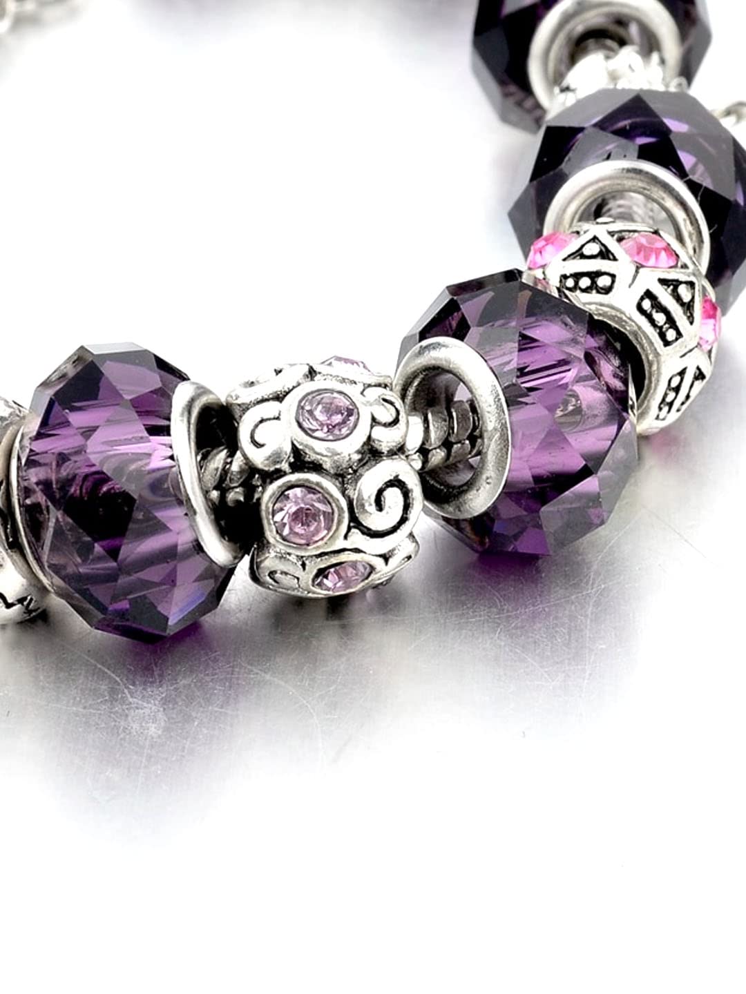 Bracelet for Women and Girls Purple Crystal Pandora Bracelets for Women | Silver Toned Crystal Pandora Charm Bracelet | Birthday Gifts For Women Valentine Gift for Girls