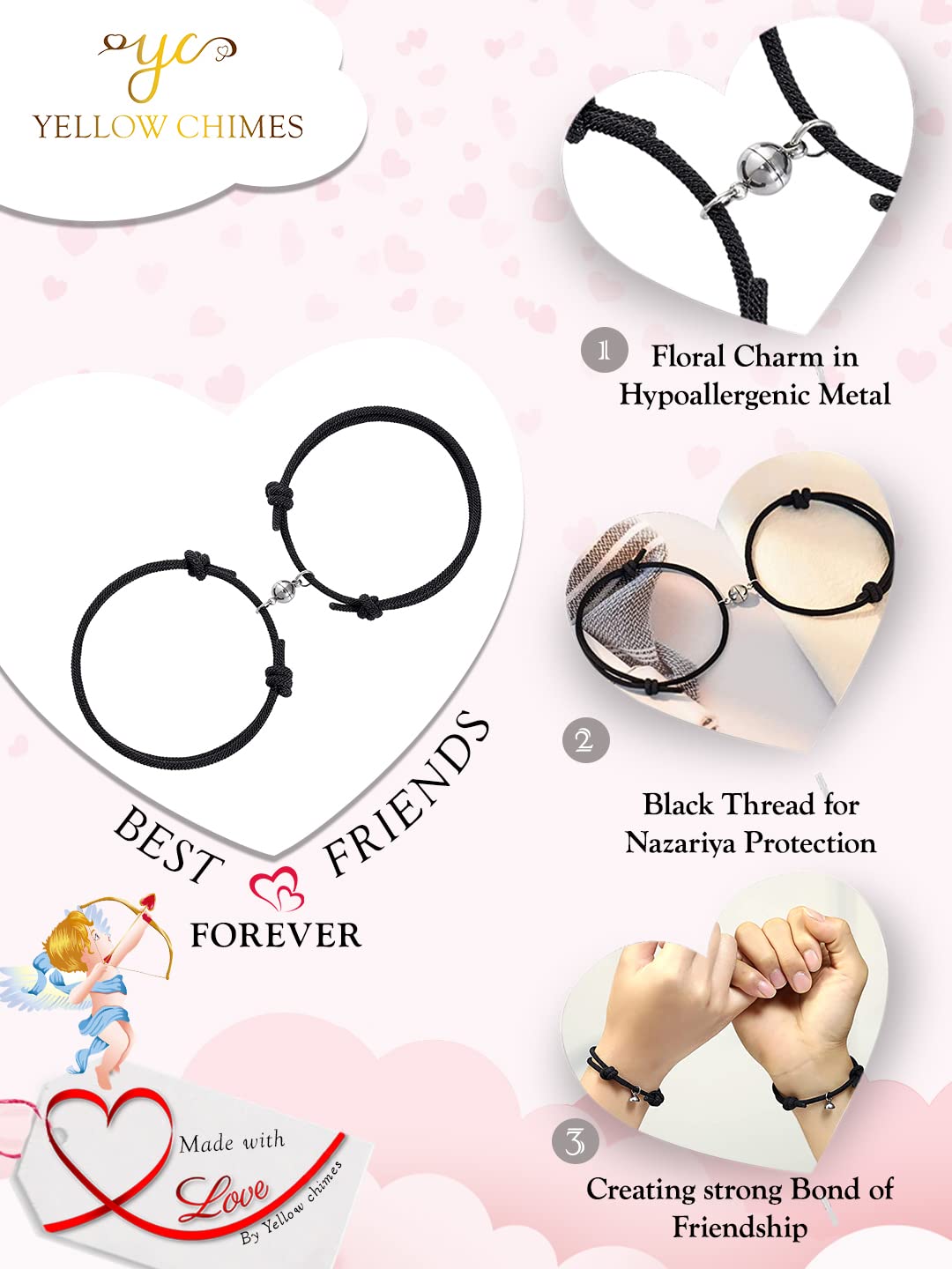 Yellow Chimes Valentine Gift for Girls Bracelet for Women and Men | Black Couple Band Bracelets for Girls and Boys | Magnetic Charms Thread Couple Bands Bracelet | Gift for Valentines