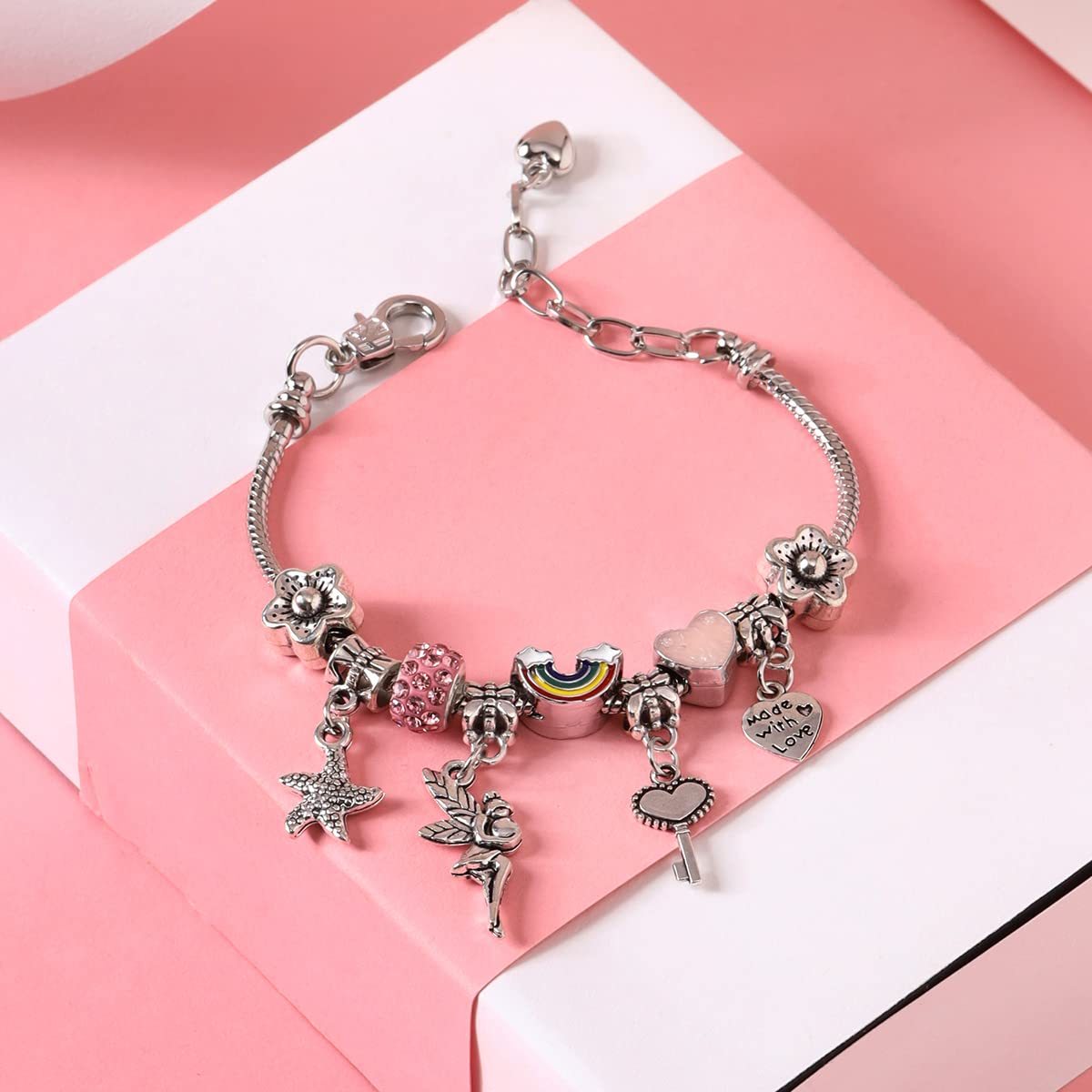 Bracelet For Women eye-catching Silver Tone With Different Charms Hanging Bracelet For Women and Girls