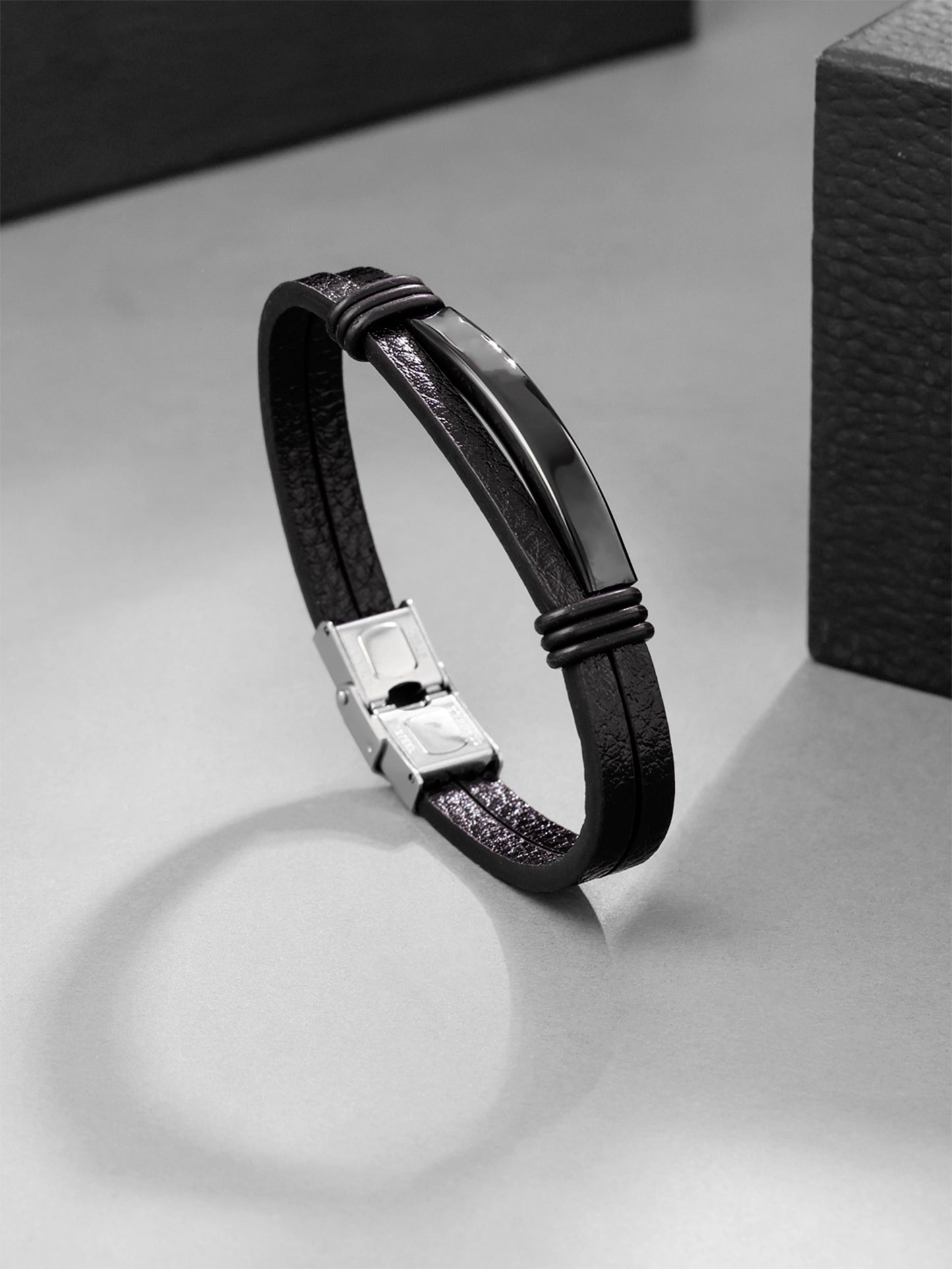 - Material Excellence: Crafted from premium black leather paired with durable stainless steel, this bracelet promises longevity and strength.