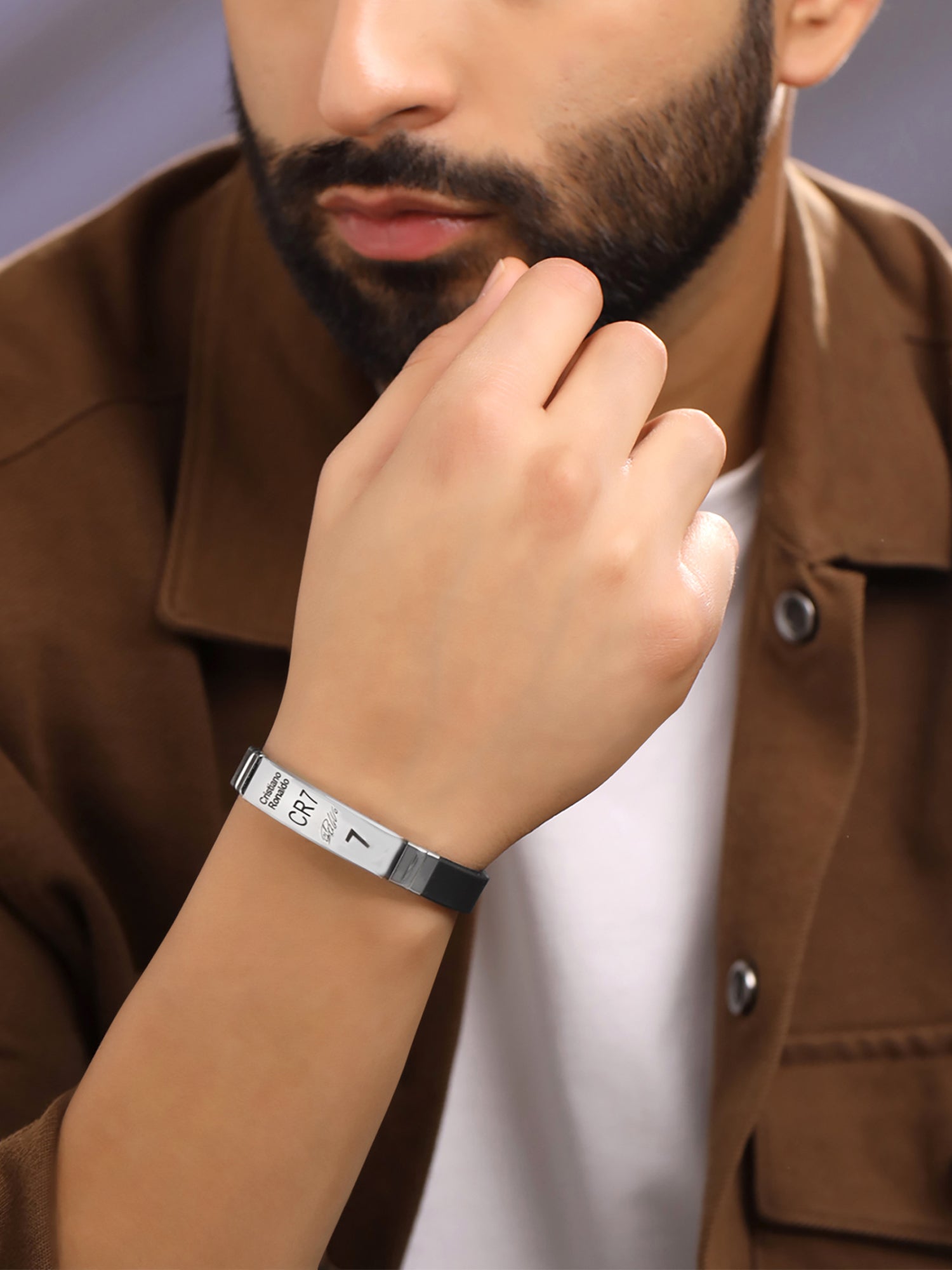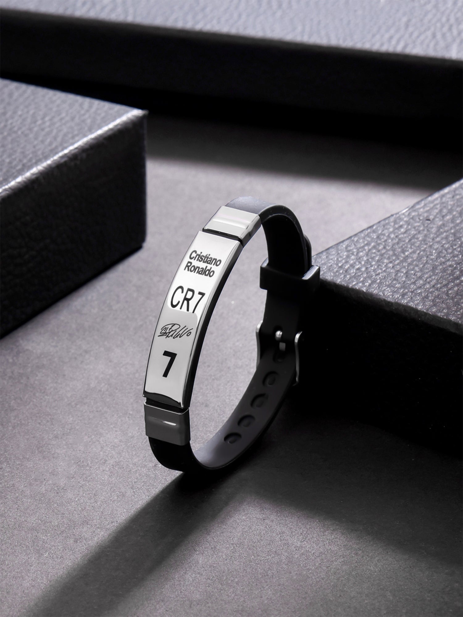 Bracelets for Men & Boys Stainless Steel Silicone Wristbands Inspirational Engraved Signature Bracelets Birthday Gift for Men & Boys (CR7 CRISTIANO RONALDO)