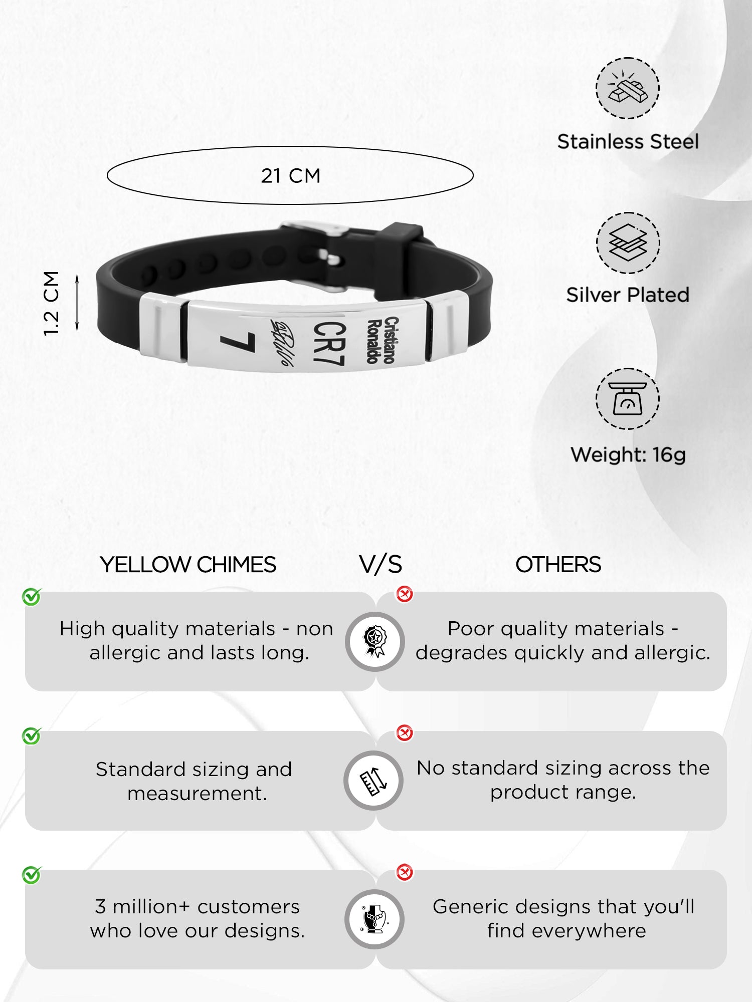 Yellow Chimes Bracelets for Men & Boys Stainless Steel Silicone Wristbands Inspirational Engraved Signature Bracelets Birthday Gift for Men & Boys (CR7 CRISTIANO RONALDO)