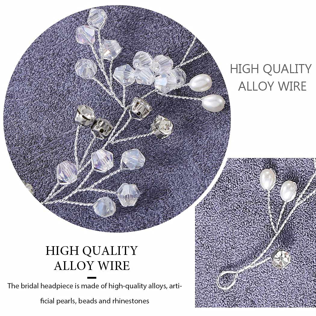 Bridal Hair Vine for Women and Girls Bridal Hair Accessories for Wedding White Pearl Headband Hair Accessories Wedding Jewellery for Women Crystals Bridal Wedding Headband Hair Vine for Girls