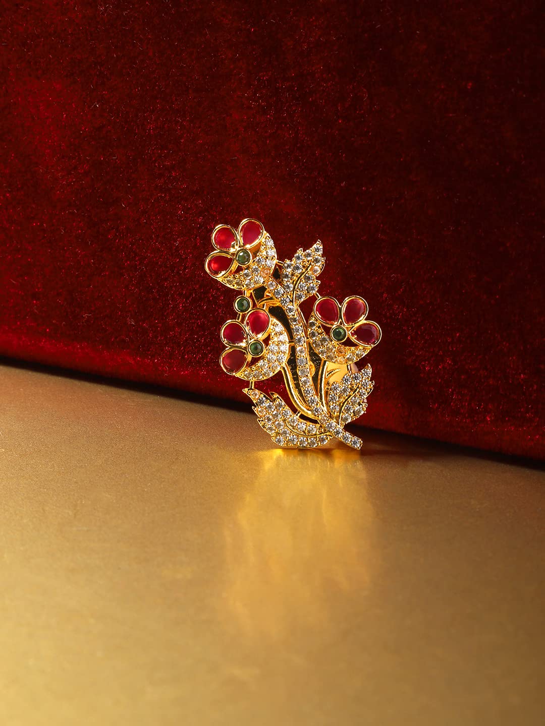 - A classic AD embellished Brooch to dress up on any Occasion, and add sass to your jazzy looks. Wearing a Gown, Ethnic or Formal wear- pinning on this timeless piece is sure to steal the spotlight.