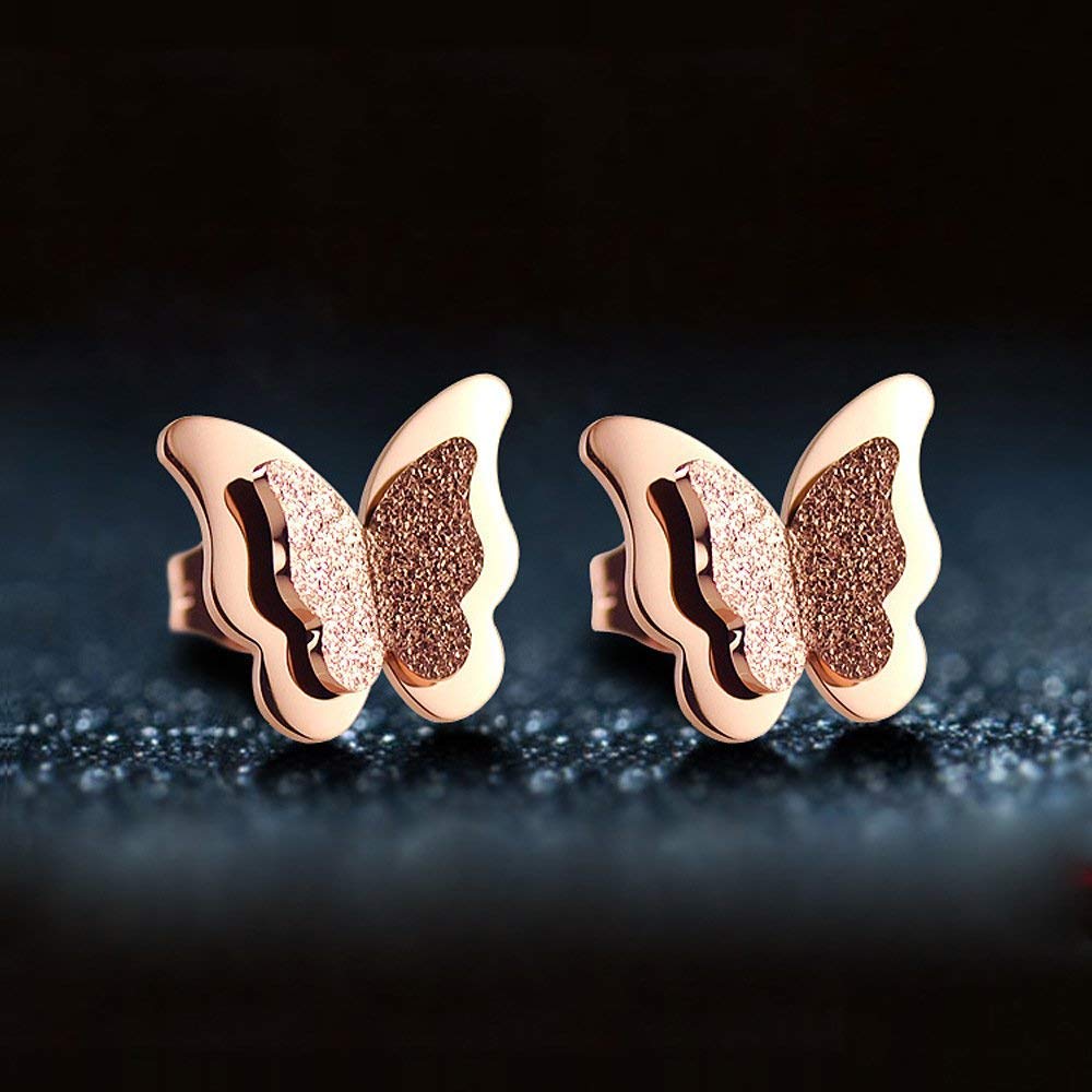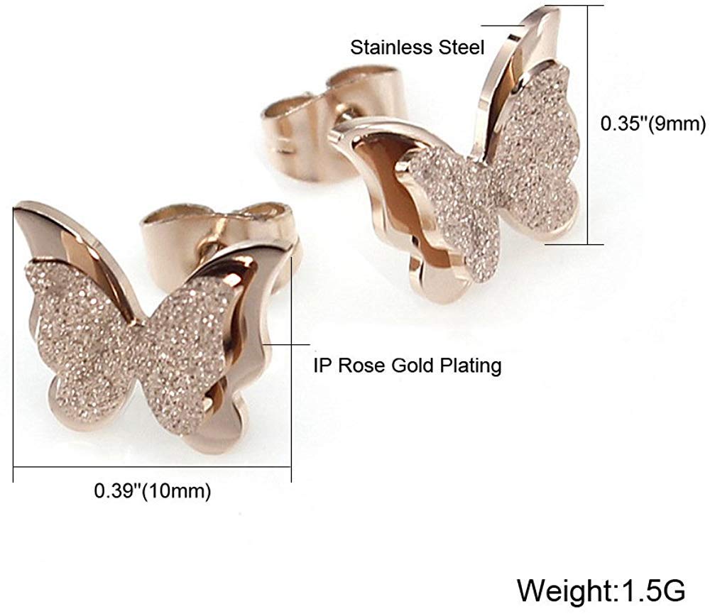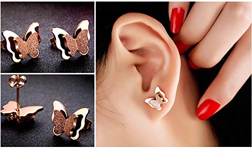 Butterfly Earrings Ring Set for Women Charming Dual Butterfly Surgical Steel 18K Real Rose Gold Plated Stud Earring Ring Set for Girls and Women.