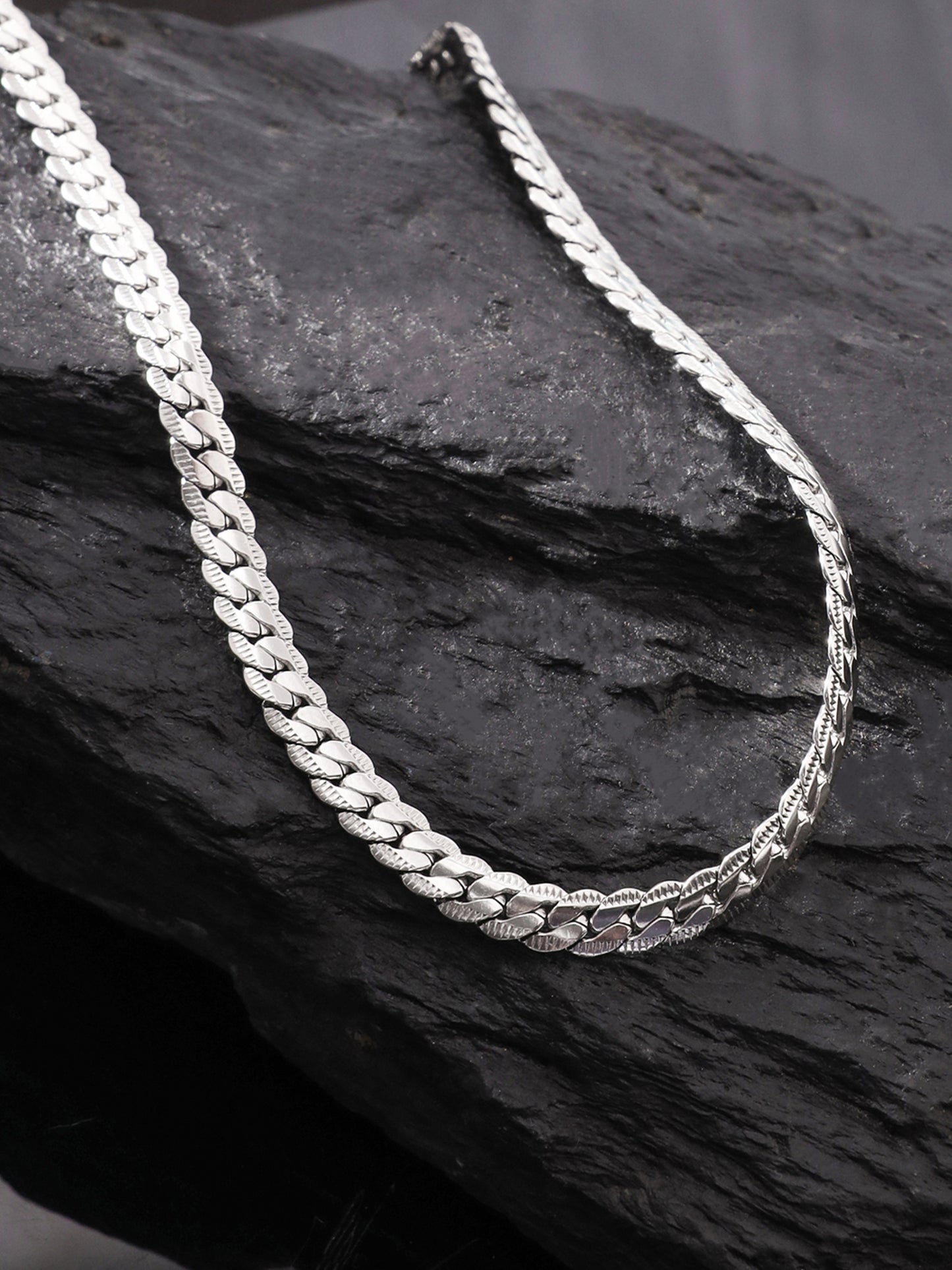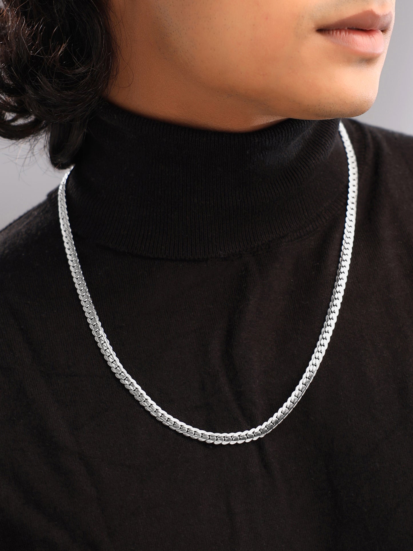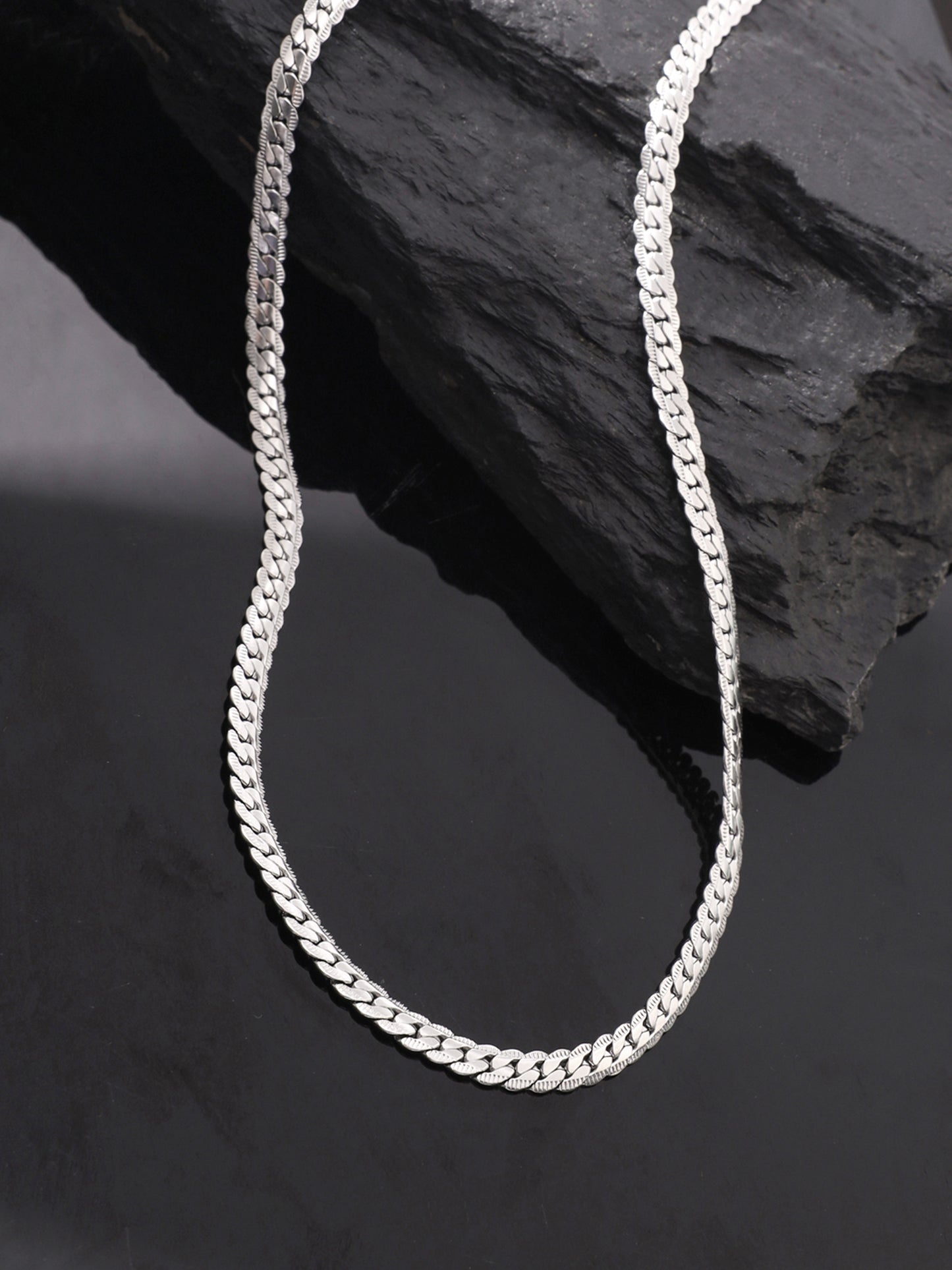 Discover the perfect blend of sophistication and durability with the Yellow Chimes Chain for men and boys. This exquisite silver flat curb neck chain is crafted from pure surgical stainless steel, ensuring a stylish accessory that is both elegant and long-lasting.