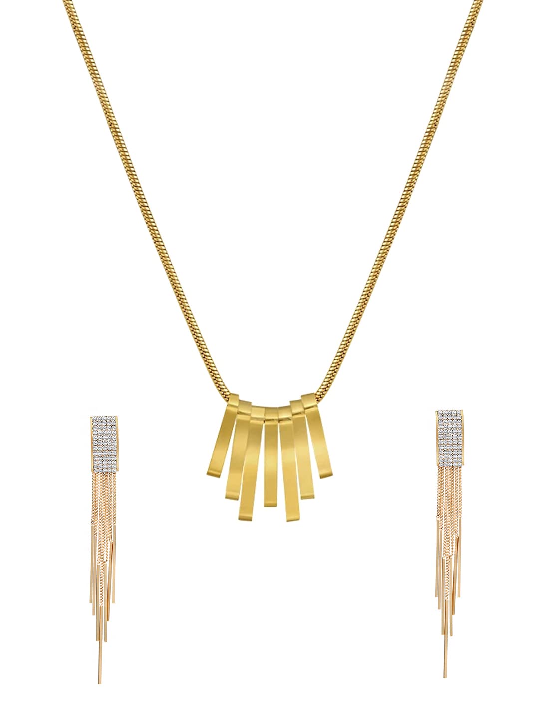 Yellow Chimes Chain Necklace With Threader Earrings Set (Style-15) Yellow Chimes brings exclusive Fashion Jewellery designs to your doorstep with the utmost ease. This beautiful and contemporary Jewellery is made with finesse. Each and every detail has been taken care while designing and manufacturing this product