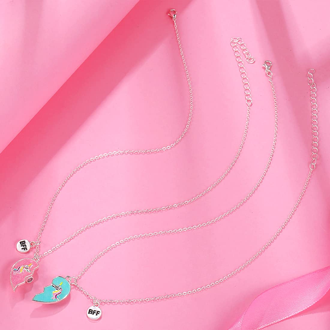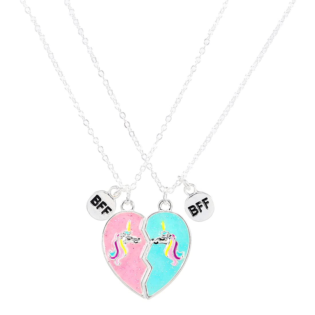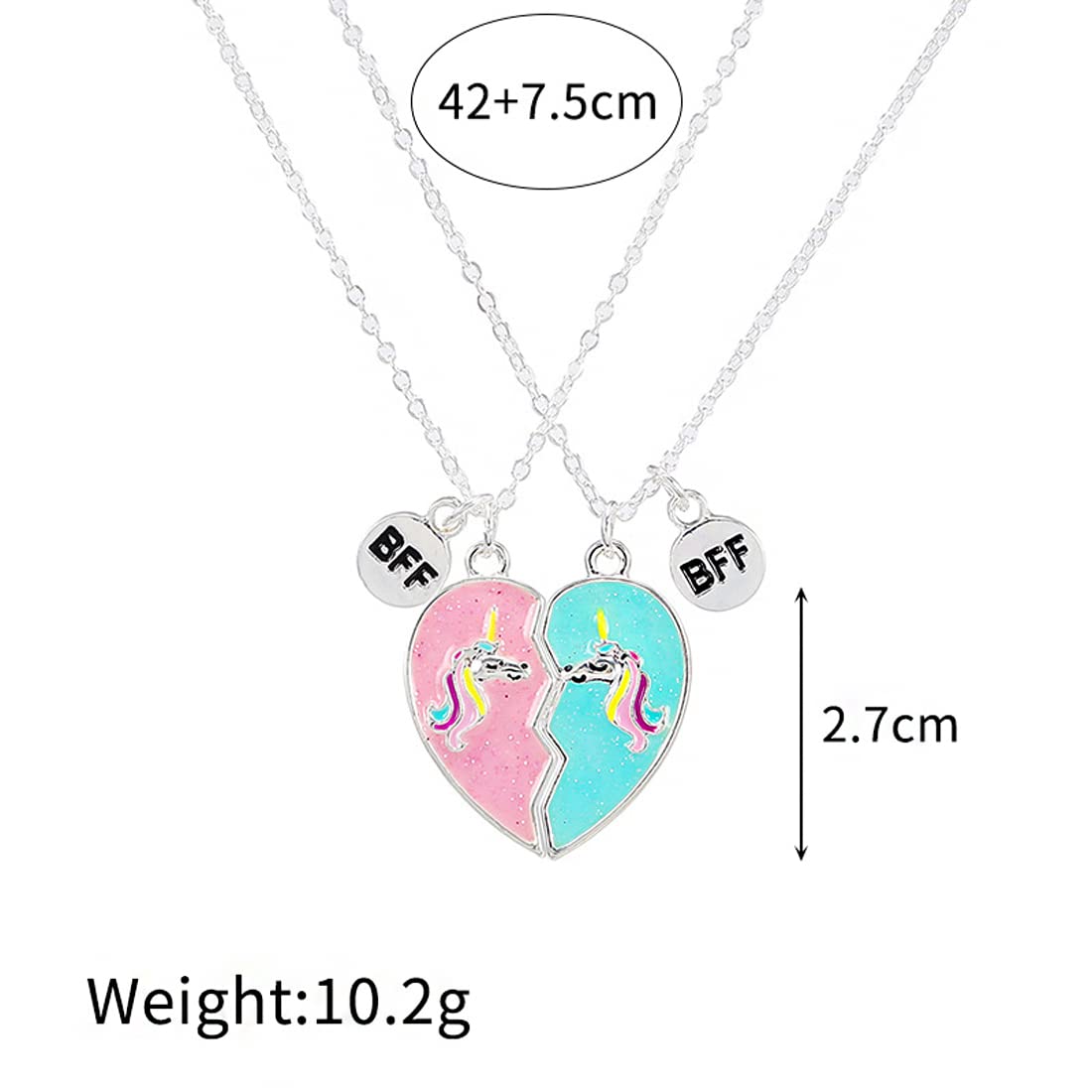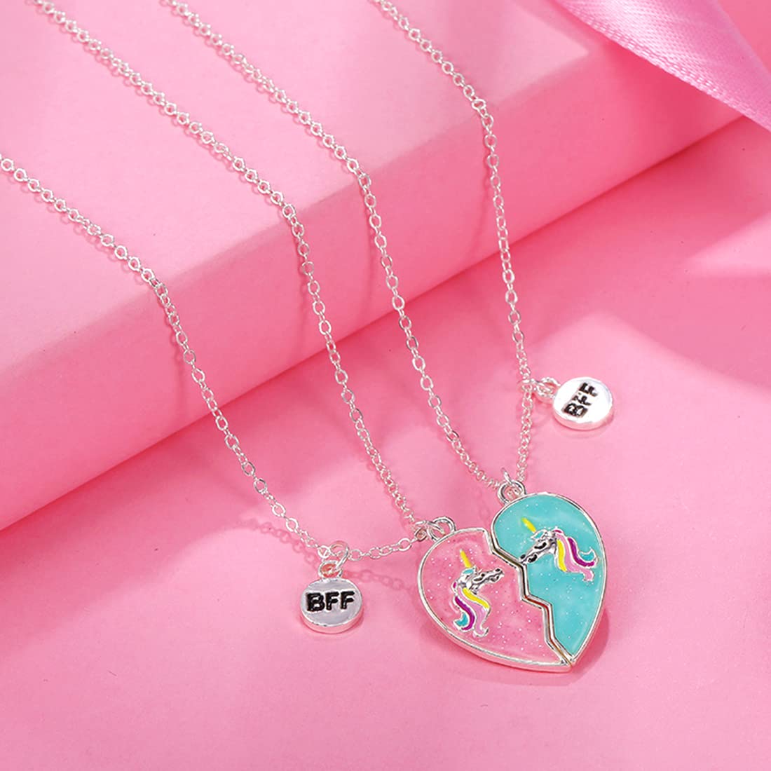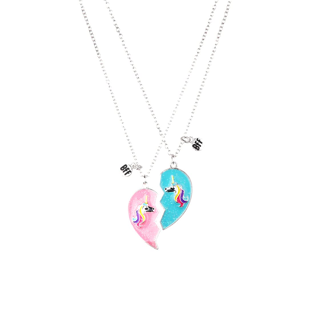 - The BFF Unicorn necklace is combined with magical unicorn elements, pink and blue unicorn neckalce, to form a pair of heart charm necklaces. Coming with 2 separate necklaces, one for you, another one for your Best friend/Sister.