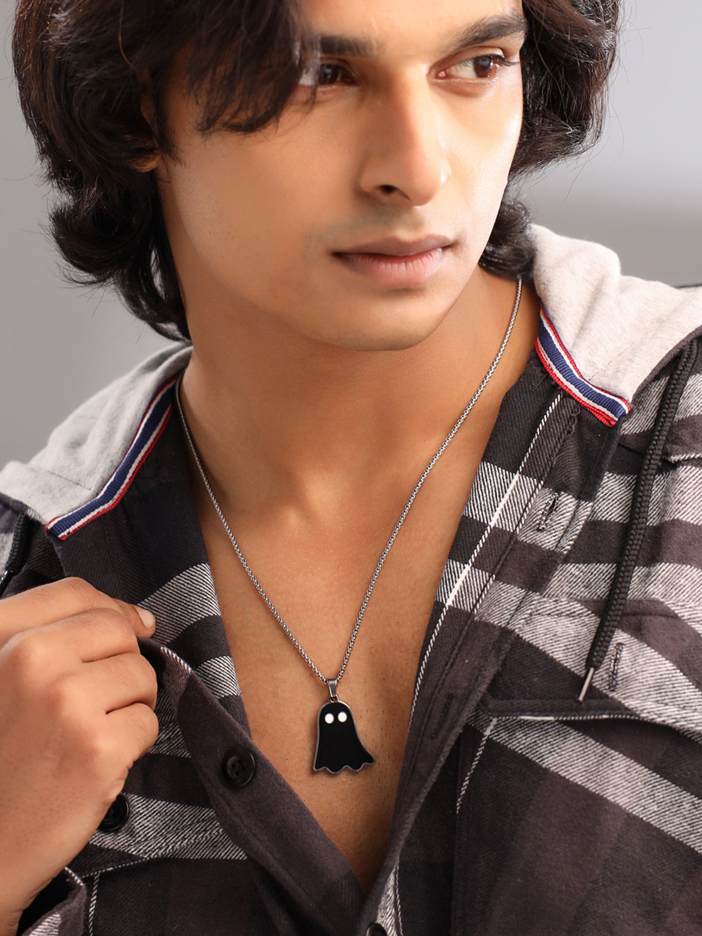 Chain Pendant for Men | Fashion Black Pendants for Boys | Lovely Ghost Shaped Pendant Necklace | Stainless Steel Chains for Boys | Accessories for Men | Birthday Gift for Men & Boys