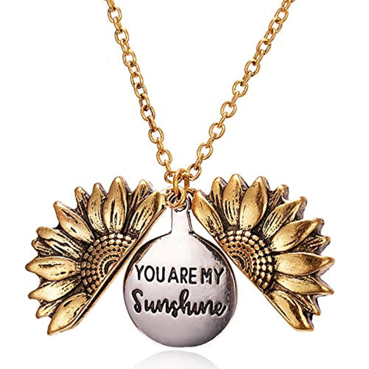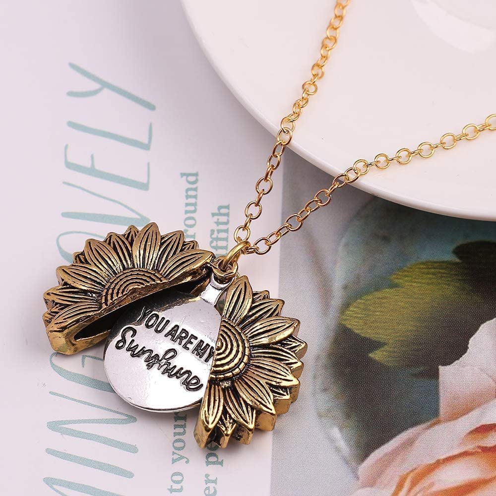 Chain Pendant for Women Golden Sunflower Pendant Engraved You are My Sunshine Surprise Gift Locket Pendant for Women and Girls.