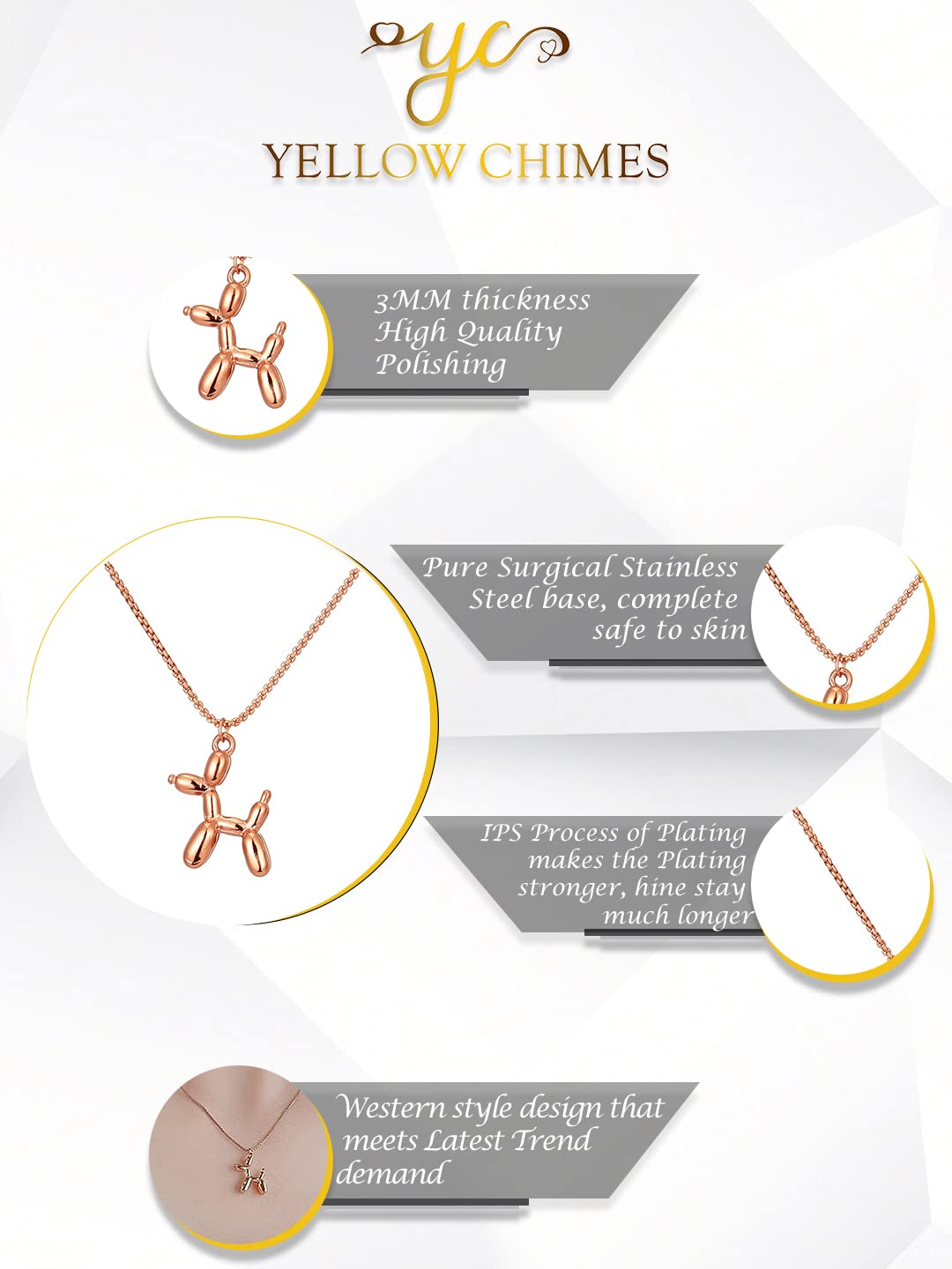 Yellow Chimes Chain Pendant for Women Rose Gold-Plated Dog-Shaped Pendant With Chain For Women and Girls Rose Gold-plated, beautifully crafted neckpiece. Has a trendy dog shaped design. This beautiful neckpiece is nice to wear and will go beautifully with any of your attire. Size:. Beautiful Looks: Designed to create chic, trendy fashionable looking jewellery pieces, statement and minimalistic jewellery pieces that help you stand out of the crowd. Skin Friendly: Base Metal: Stainless Steel, Nickel free and lead free as per international standards. Anti-allergic and safe for skin. Produced under Quality Control; One by One Checking; Focus on Detail Processing. Top Quality/ Latest Trend Design/Anti-Allergy. Best Gift: Perfect gift for your loved ones. Ideal gift for her, gift for wife, gift for girls, valentines gift, birthday gift for girls, diwali gift, anniversary gift, rakshabandhan gift, gift for mother, gift for sister, gift for love, gift for girlfriend.