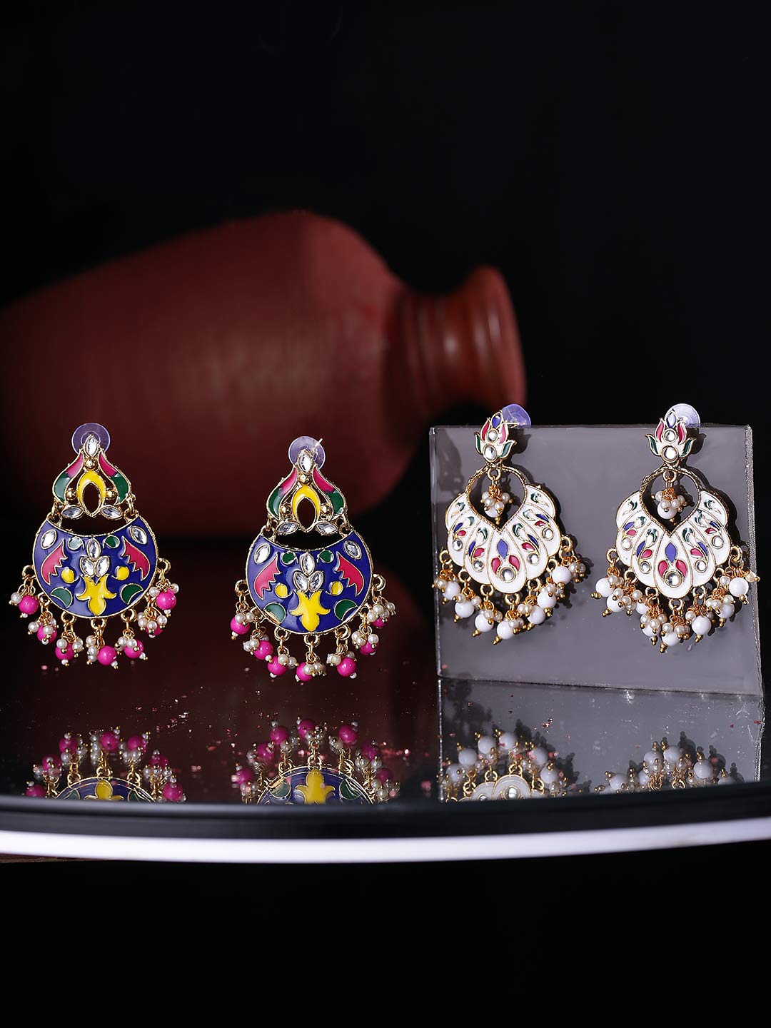 Yellow Chimes Chandbali Earrings for Women Combo 2 Pairs Multicolor Meenakari Chandbali Earrings for Women and Girls