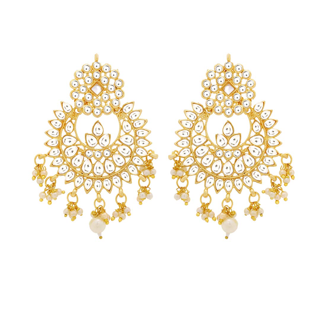- Stylish Adorable Leaf Designer Studded Kundan Pearl Chandbali Earrings from Your Own Yellow Chimes. These Modern Looks Dangler earrings will complement any Occasion Ethnic Wear as a Statement Piece.