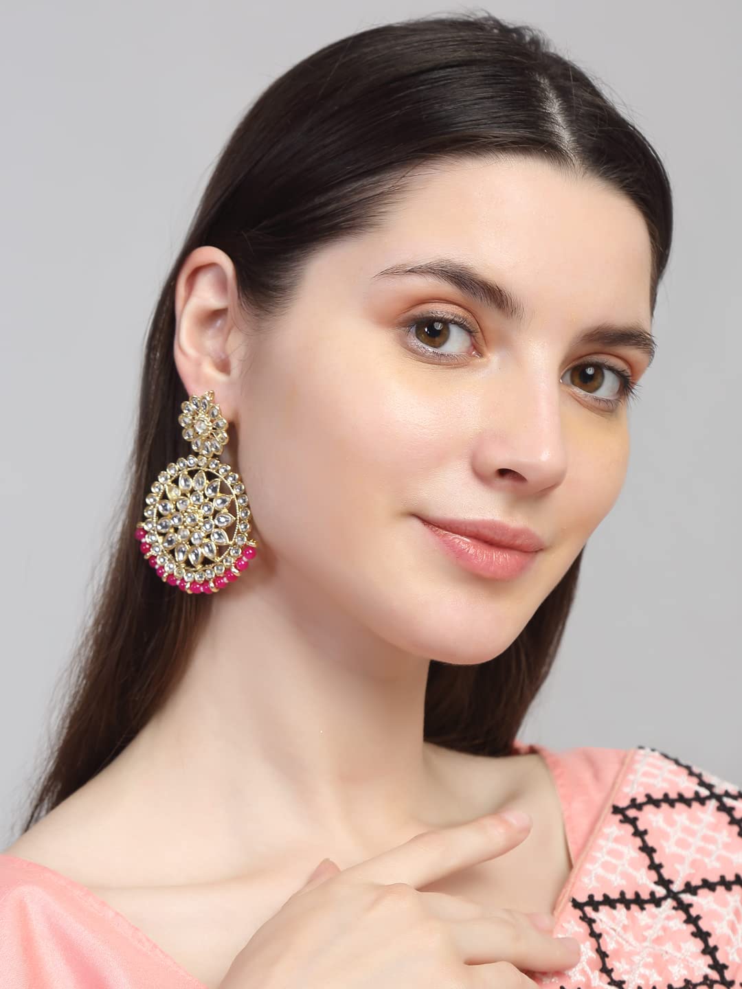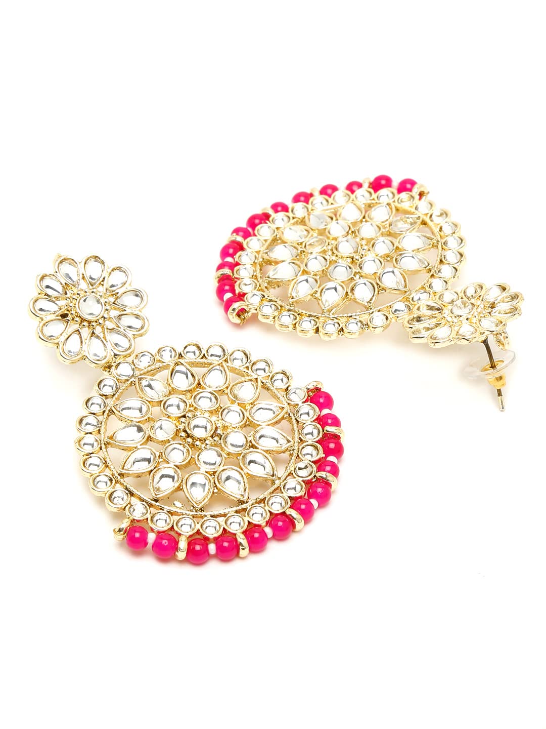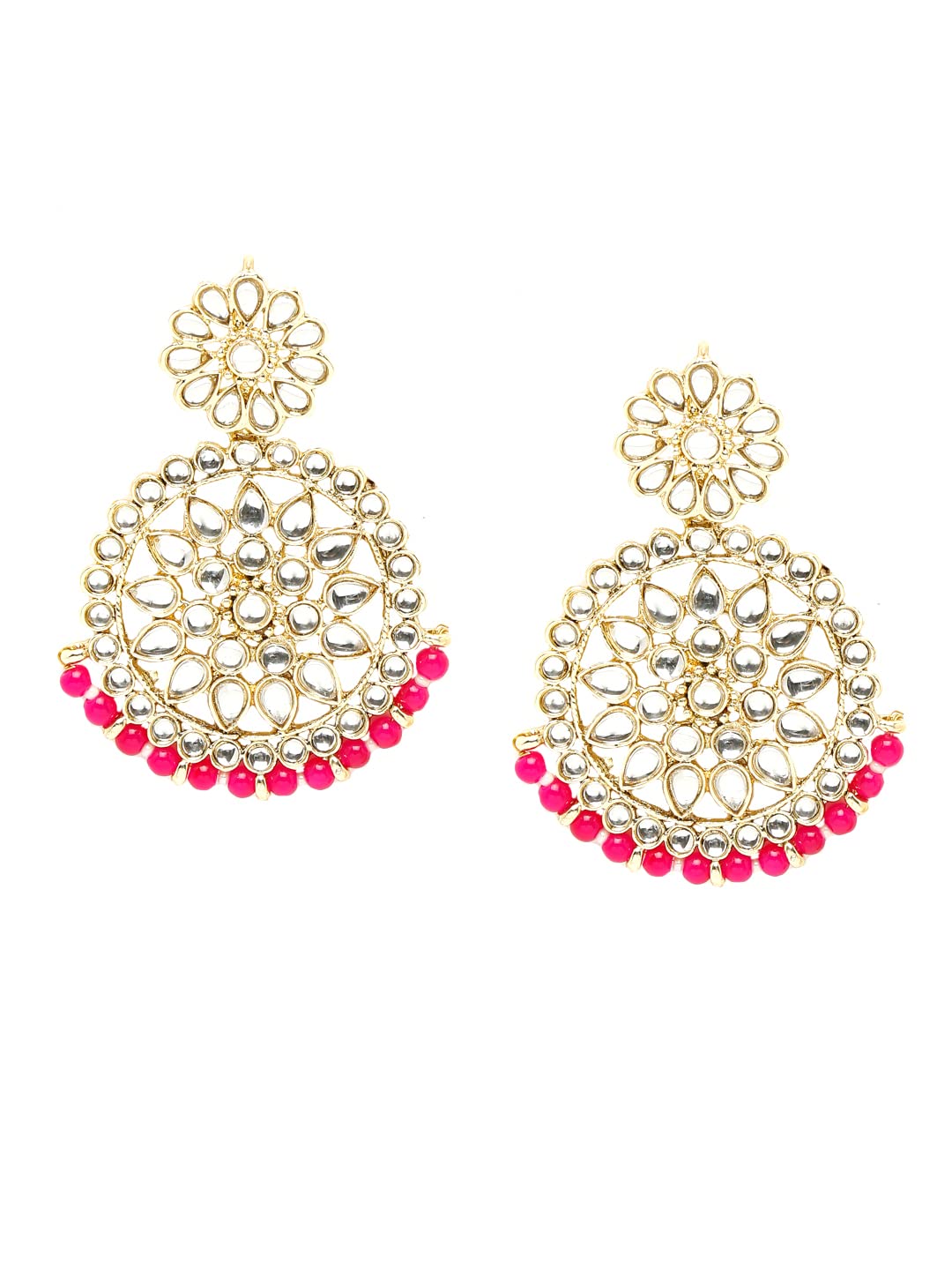 Chandbali Earrings for Women Gold Plated Kundan Studded Pink Pearl Drop Earrings For Women And Girls