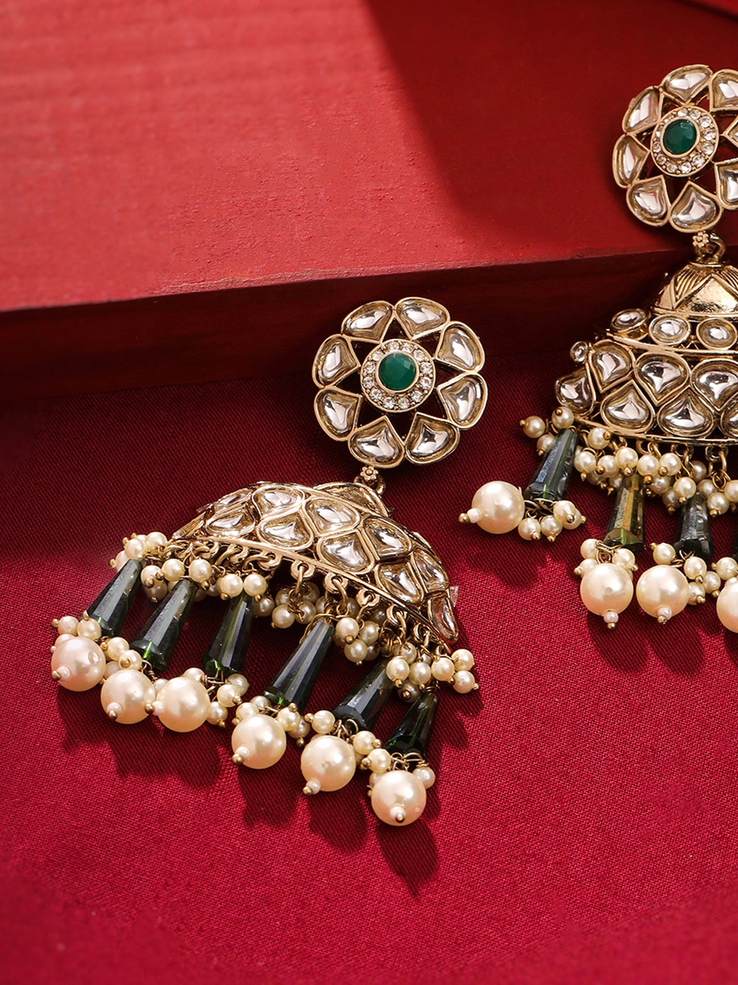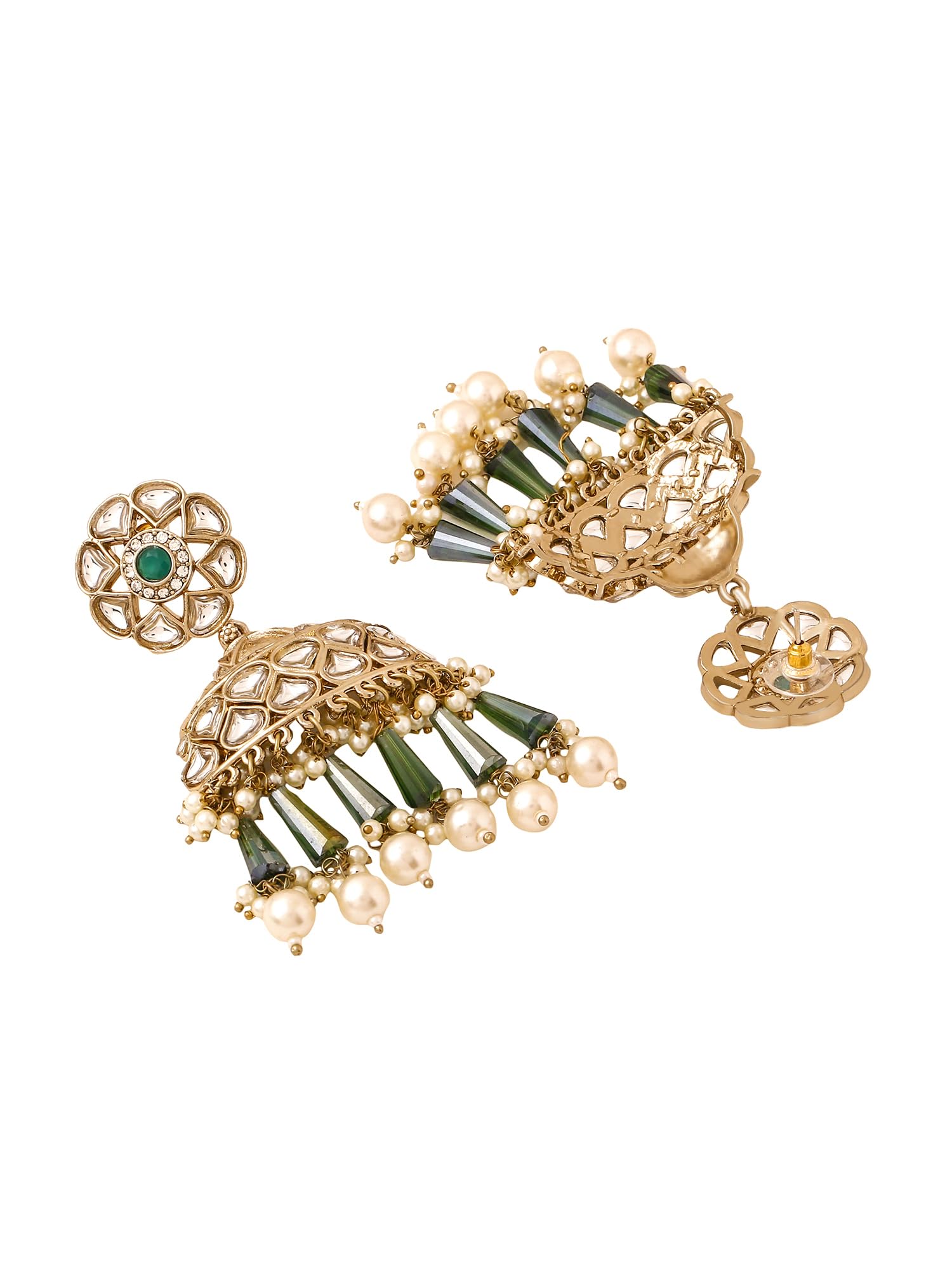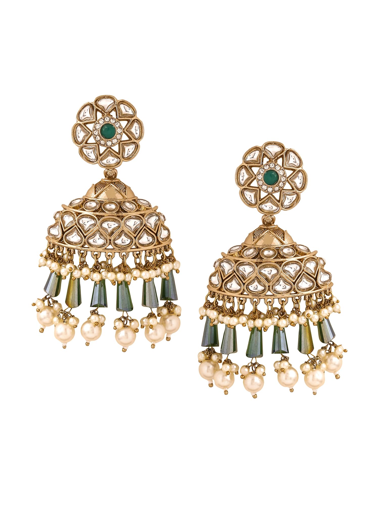 Yellow Chimes Chandbali Jhumka Earrings for Women | Traditional Kundan Earrings for Girls Ethnic Gold Plated Women Earrings Green Earrings | Birthday Anniversary Gift for Girls (Kundan Drop Earrings)