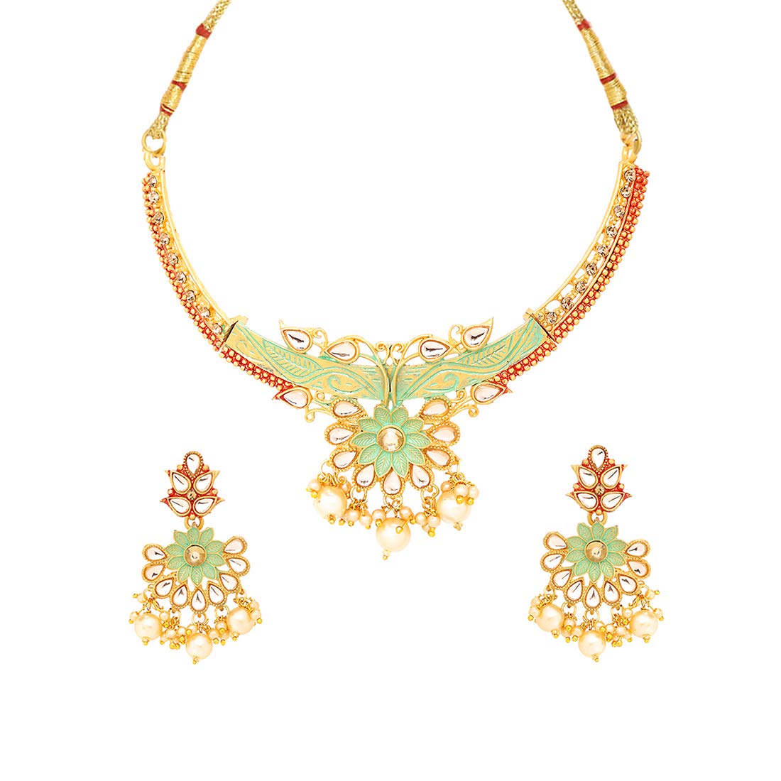 Choker Necklace Set for Women Gold Plated Meenakari Jewellery Set Traditional Floral Choker Necklace Set for Women and Girls.