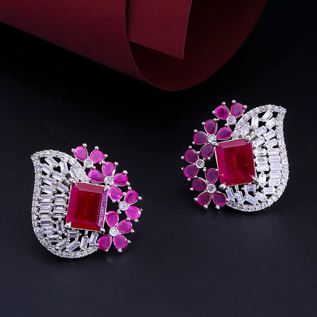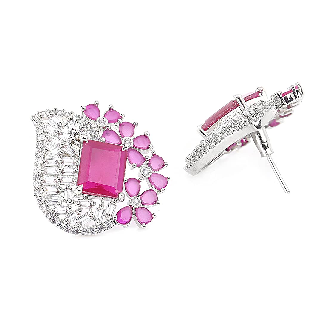 - Sparkling Luxurious Looks High Grade AD Stones in White shade Stud Earrings.Produced under Quality Control; One by One Checking; Focus on Detail Processing. Top Quality/ Latest Trend Design/Anti-Allergy .