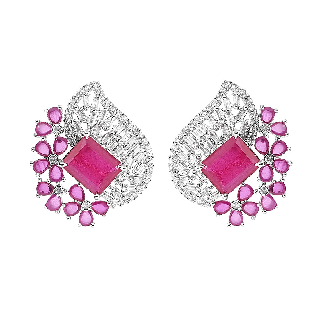 Discover the enchanting Yellow Chimes Classic AD/American Diamond Studded White Rhodium Plated Pink Flower Stud Earrings. These exquisite earrings are designed for women and girls who appreciate the perfect blend of traditional charm and modern sophistication.