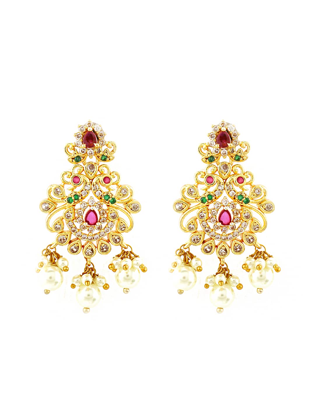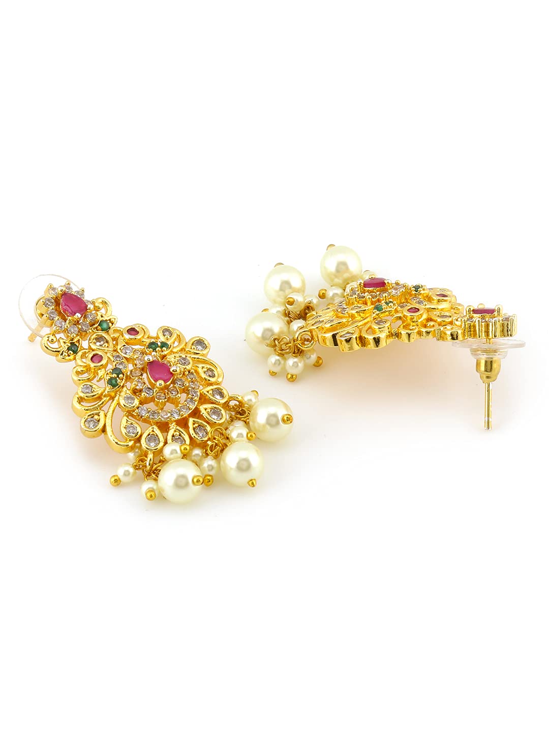 Yellow Chimes Classic AD/American Diamond Studded Lakshmi Design Golden Bridal Jewellery Set with Choker Long Necklaces Earrings and Maang Tikka for Women and Girls, Medium (YCADNS-23LCKDLB-GL) Elegant and lovely Stylish Pretty Multicolour Crystal Lakshmi Design Bridal Jewellery Designer Contemporary Piece,This Gold Plated American Diamond Necklace Set Designer Jewellery Set with Earrings and Maang tikka in A5 Grade clarity is Stunning & Preciously Suitable for all kinds of occasions. Beautiful Looks at One Glance - with Intricate High Polish creates Glamorous Reflections and adds Luxurious Looks.Produced under Quality Control; One by One Checking; Focus on Detail Processing. Top Quality/ Latest Trend Design/Anti-Allergy. 5-Layer Advanced 18K Micro Rose Gold Plated for High Durability. Nickel and Lead free as per international standards. Anti-allergic and safe for skin Size: Choker Necklace length - 49 CM. (including adjustable), Width - 1 CM, Charm - 5.5 * 3.2 CM. Long Necklace length-70 cm (including adjustable), Width - 1 cm, Charm - 6 * 3.8 CM. Earrings - Length- 4.5 CM, Width- 2.4 CM, Maang Tikka Length- 11.5 CM, Width- 2.4 CM Gift For Women ! - Ideal Valentine, Birthday, Anniversary gift for someone you LOVE. With our packaging Box, you do not need to opt-in for any additional gift packaging. The product comes in a beautiful Elegant Ready-to-Gift Box.