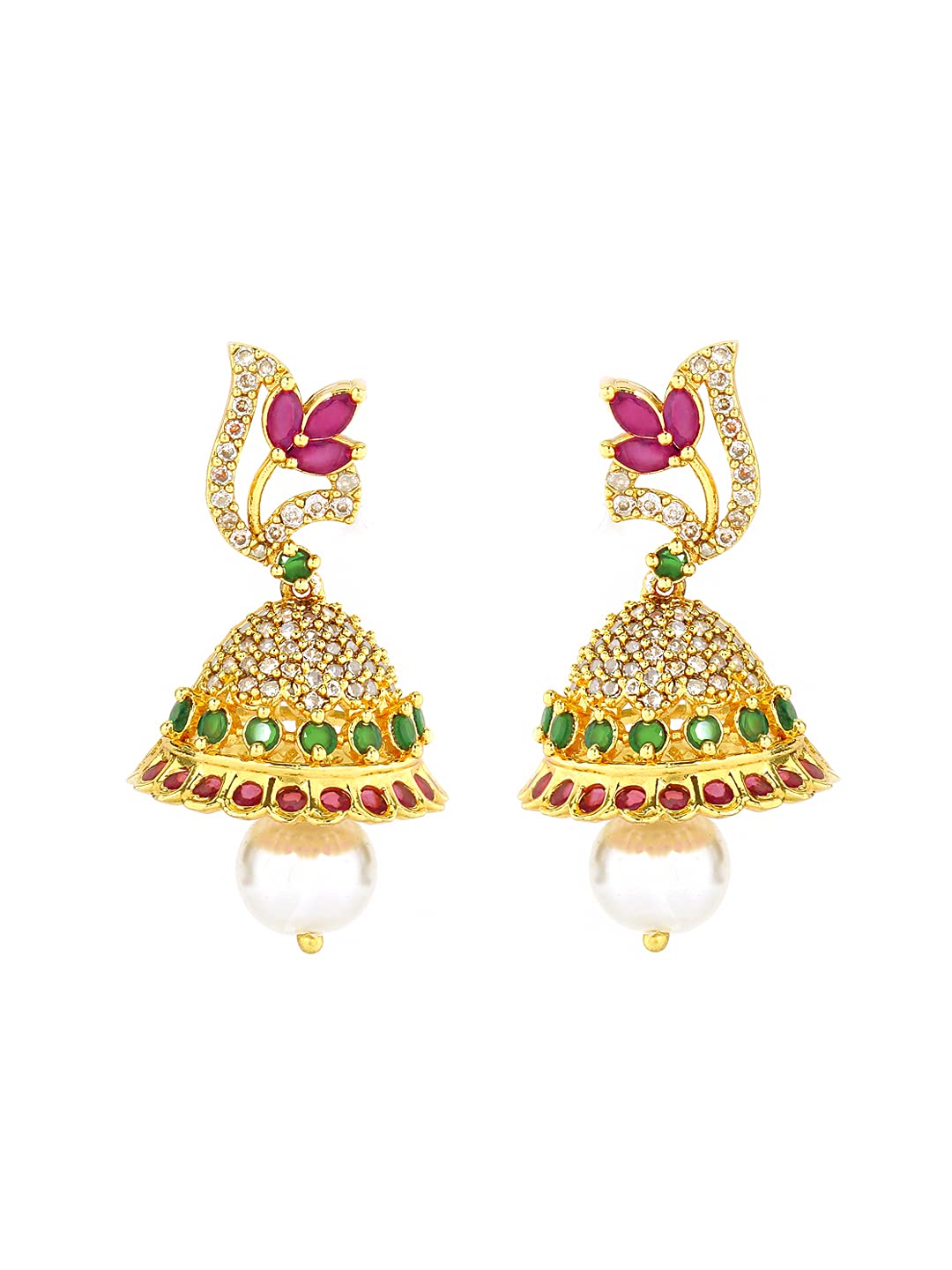 - Elegant Pretty adorable Stylish AD/American Diamond Crystal Studded Classic Jhumka Earrings .New style ladies earrings Ethnic yet Contemporary hold in its Design, can be worn on any Occasion to boost up your Attire Looks.
