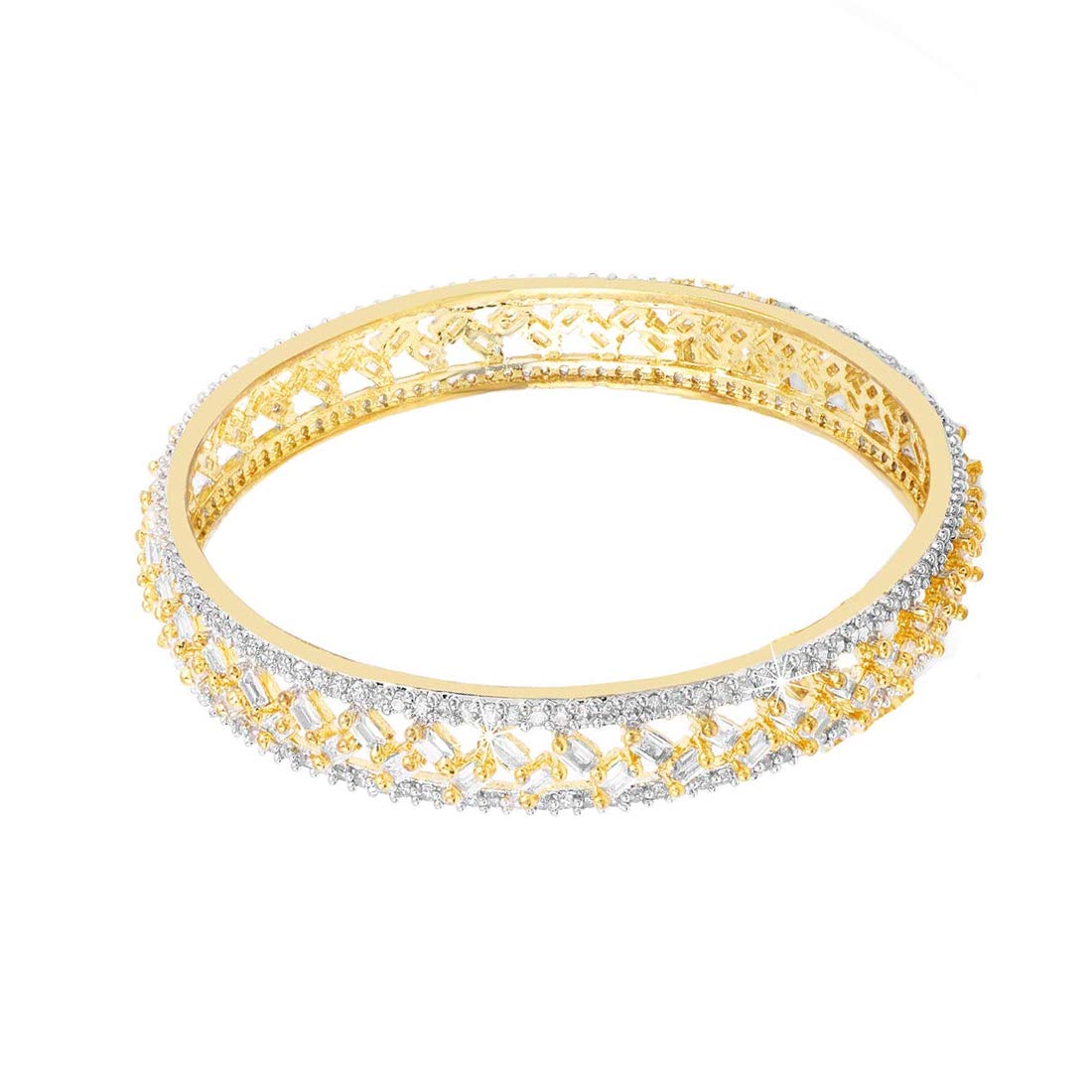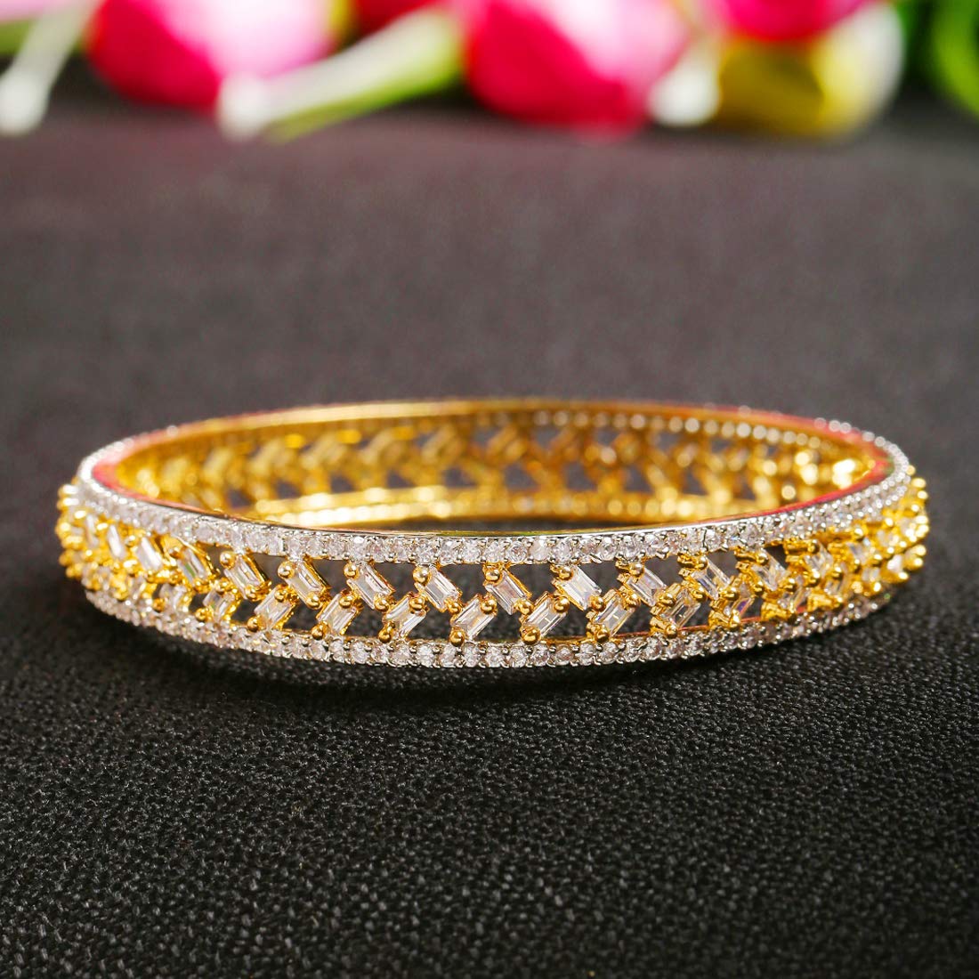 - Elegant Pretty adorable Stylish Ad/American Diamond White Crystal Studded 18k Gold Plated Classic Designer 1 Pcs Traditional Bangles Jewellery are Ethnic yet Contemporary hold in its Design, can be worn on any Occasion to boost up your Attire Looks.