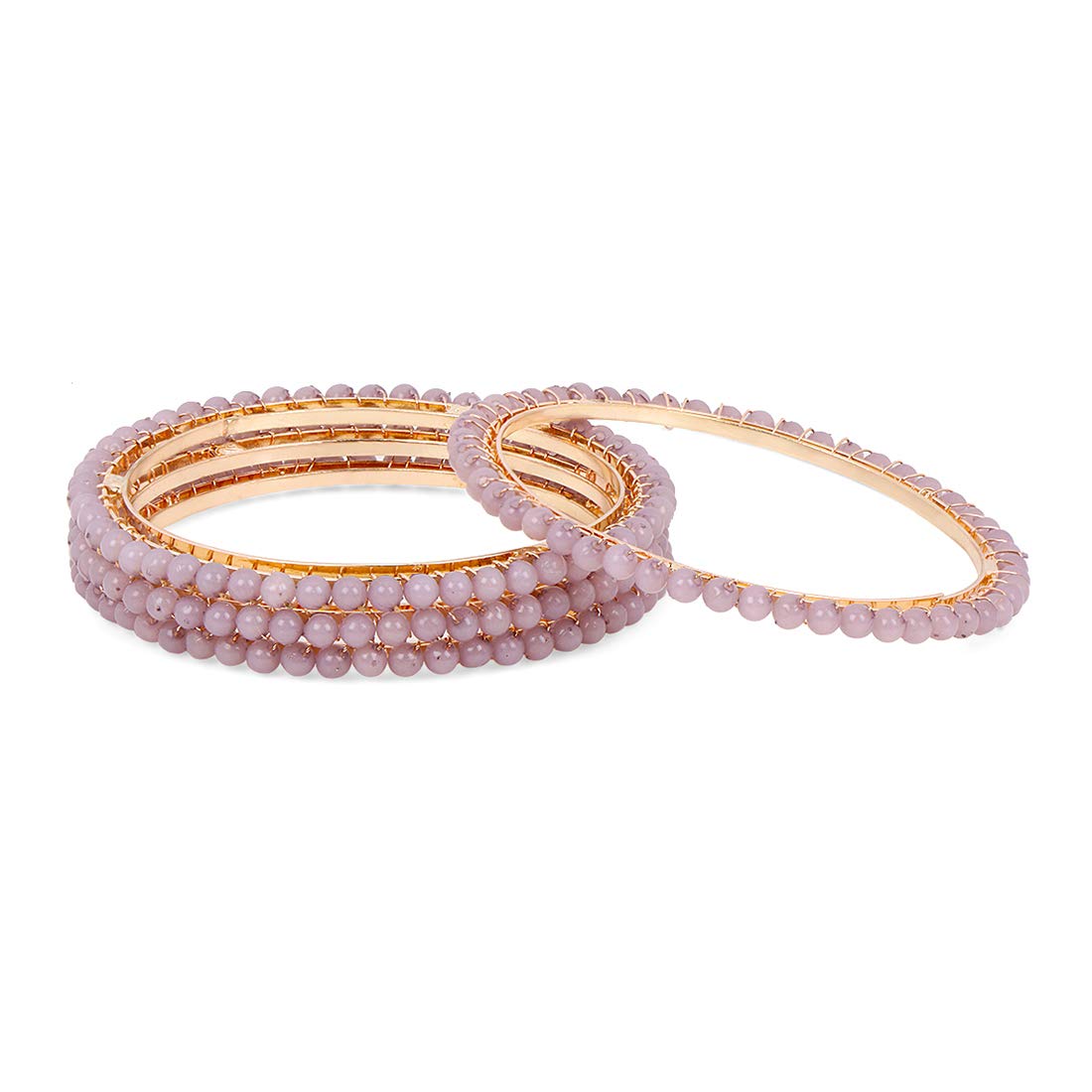 Classic Design Handcrafted Beads Studded Gold Plated 4 Pcs Grey Beaded Bangles Set For Women & Girls (2.4) (2.4)
