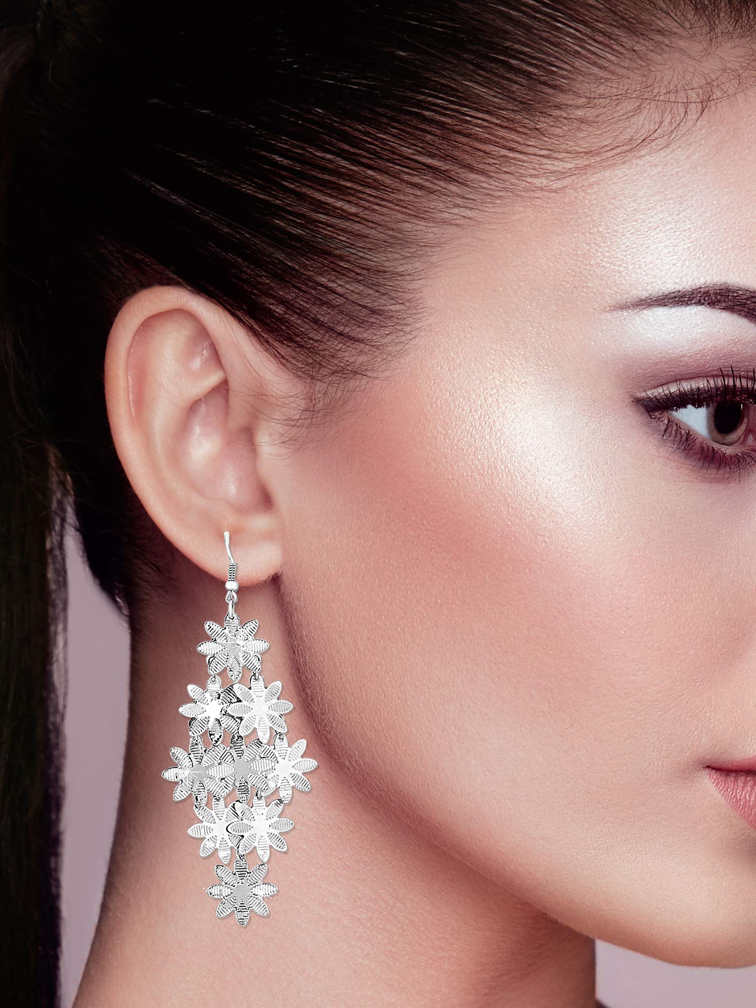 Give your look a touch of glamour with the Yellow Chimes Classic Snowflakes Dangle Earrings and let your style shine!