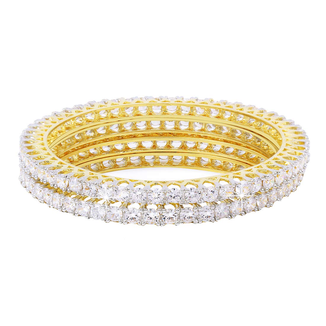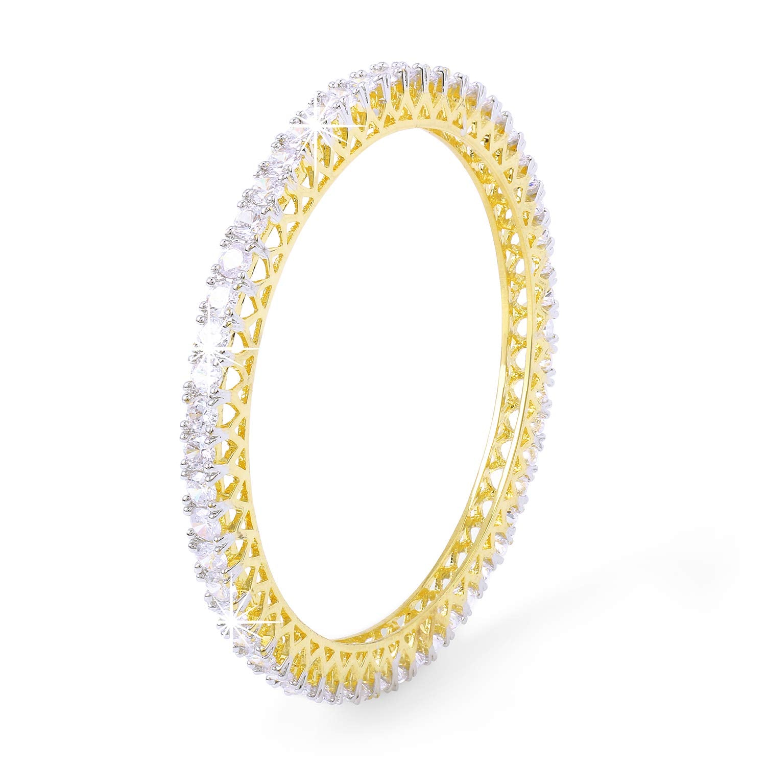 Yellow Chimes Classic White AD/American Diamond Studded 18k Gold Plated 2 PCs Handcrafted Bangles Set for Women & Girls (2.4)