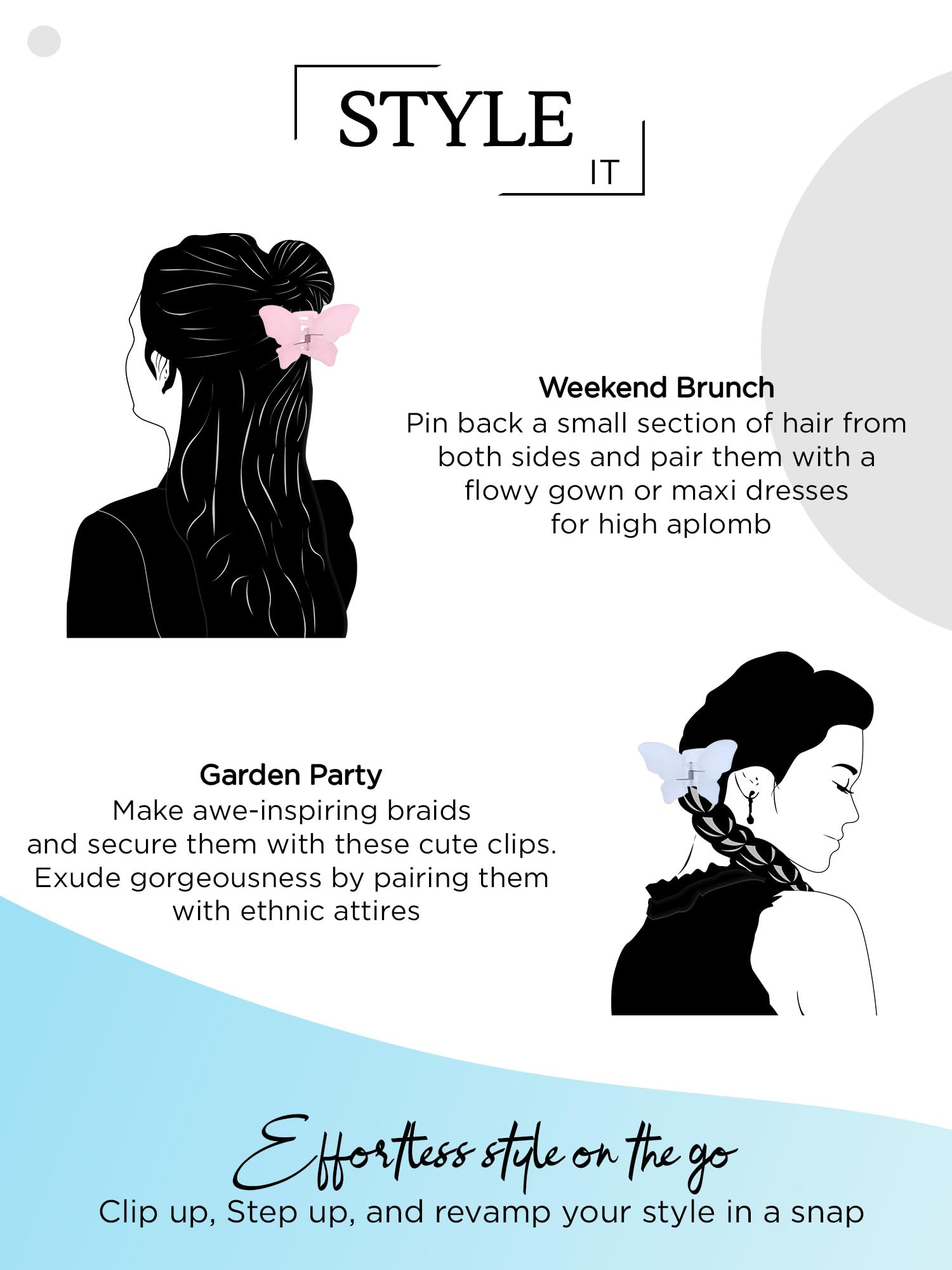 - Elegant butterfly clips for women Hair Accessories for Thick or less Hair, made with soft material that will no pull or break your hair, can be aplied with easy and taken our out with any break on hair.A must have piece in your fashion wardrobe. Hair clutches for women are classic, they never go out of style, and let you design your hairstyle in many ways you want.