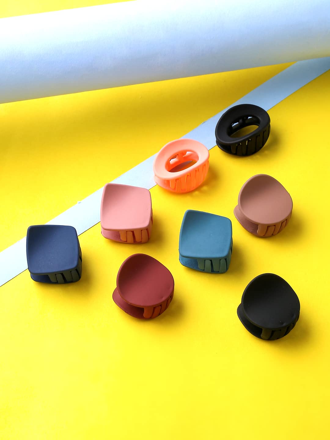 - Matte Finish Multicolor solid geometric shaped pattern claw clip for women hair accessories stylish hair decoration. Use them to hold up sections while styling hair, create a half-up 'do, or pull all of your hair back, these clips are quite versatile.A must have piece in your fashion wardrobe. Hair clutches for women are classic, they never go out of style, and let you design your hairstyle in many ways you want.