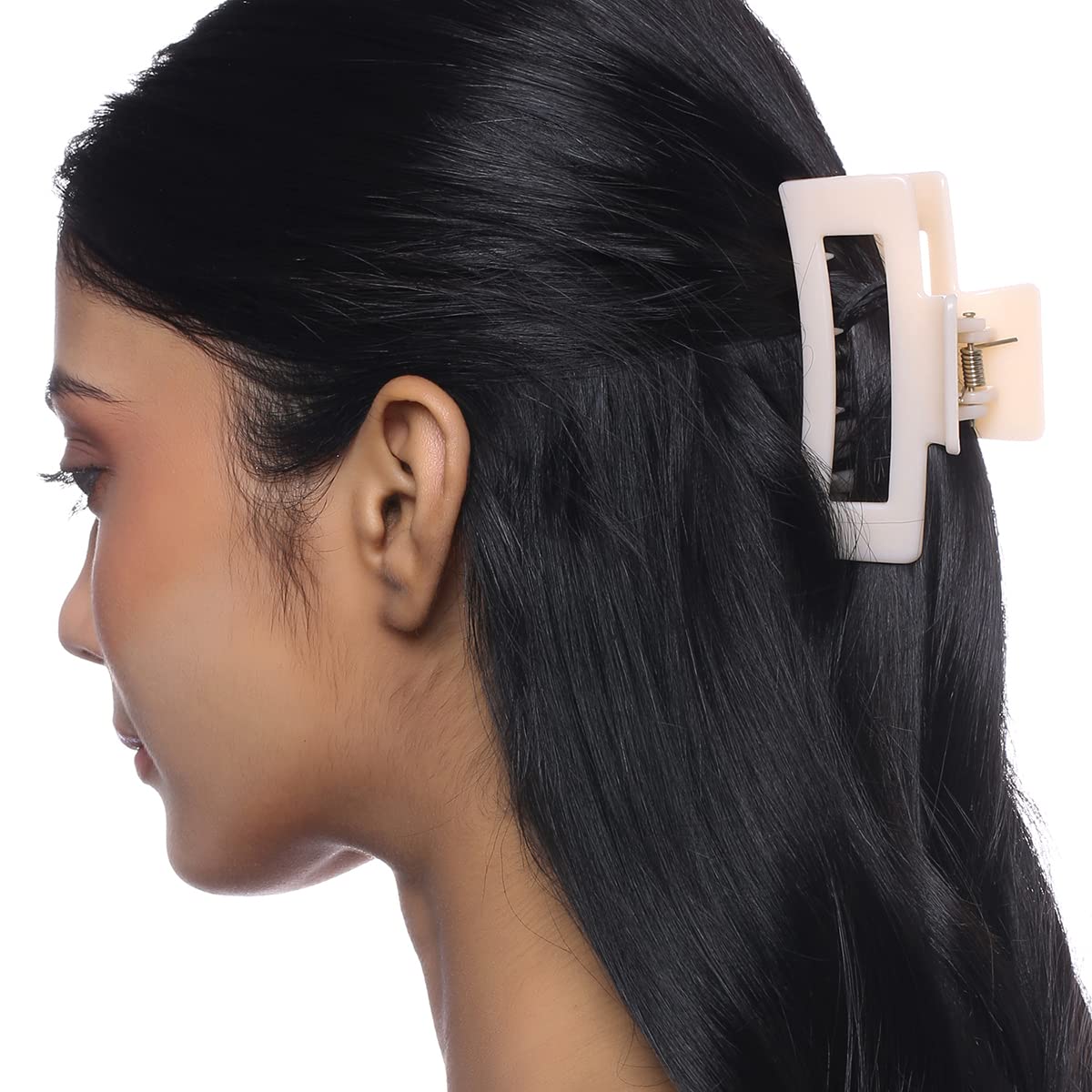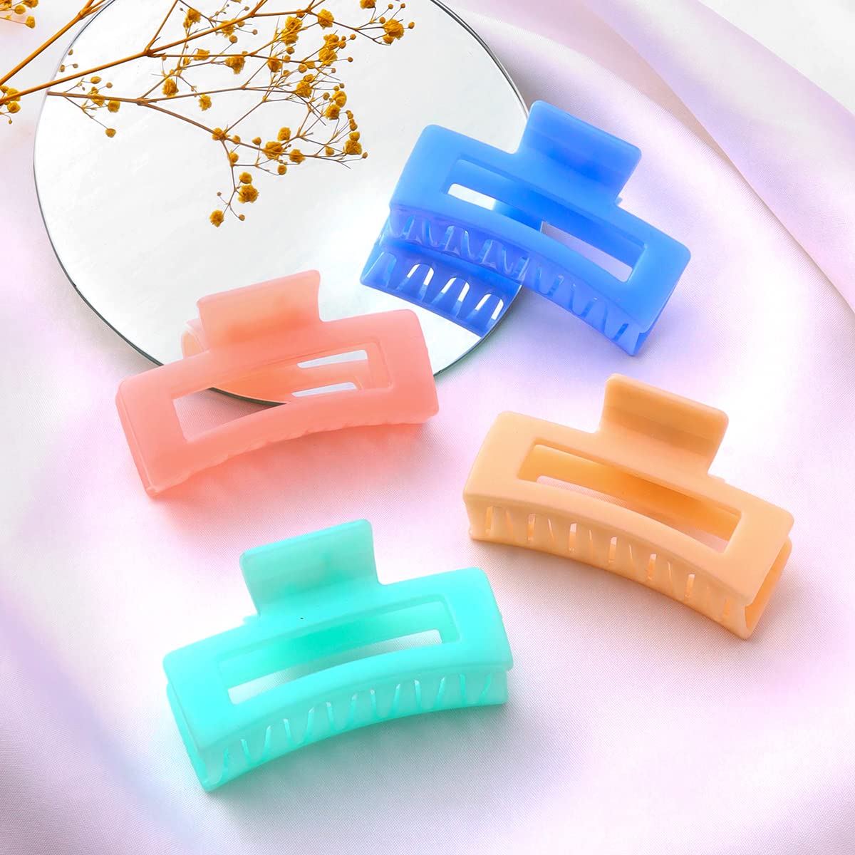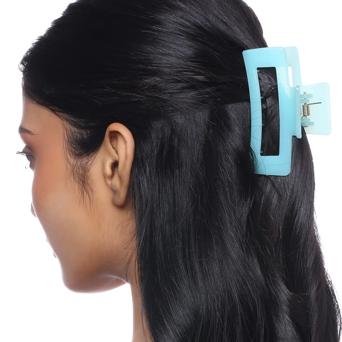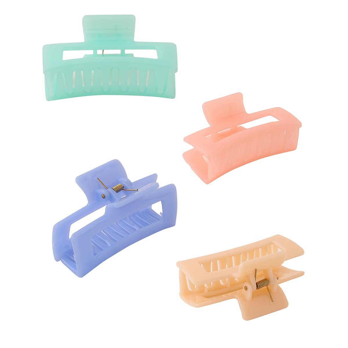 Yellow Chimes Claw Clips for Women Hair Clutches for Women Hair Accessories For Women Set of 4 Pcs Claw Clip Multicolor Big Clutchers for Hair Clutcher for women and Girls Gift for Women & Girls Rectangle shaped Multicolor solid pattern claw clip for women hair accessories stylish hair decoration. Use them to hold up sections while styling hair, create a half-up 'do, or pull all of your hair back, these clips are quite versatile.A must have piece in your fashion wardrobe. Hair clutches for women are classic, they never go out of style, and let you design your hairstyle in many ways you want. 4 Units overall. Size: Length is 4 Cm * Width is 8.5 Cm (Length x Width). No Damage On Hair- Gentle on hair, Strong on style. They don't snag or break strands. Goes well with both thick and fine/ thin hair. Material - Made of celluloid acetate material, strong in structure makes it durable to use, not easy to deform or break. Perfect For Gifting- A perfect gifting option for girls of all age groups. It serves multiple purposes, suits everyday requirements, and can also be used for special occasions.
