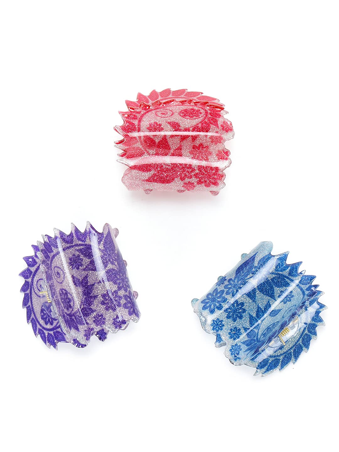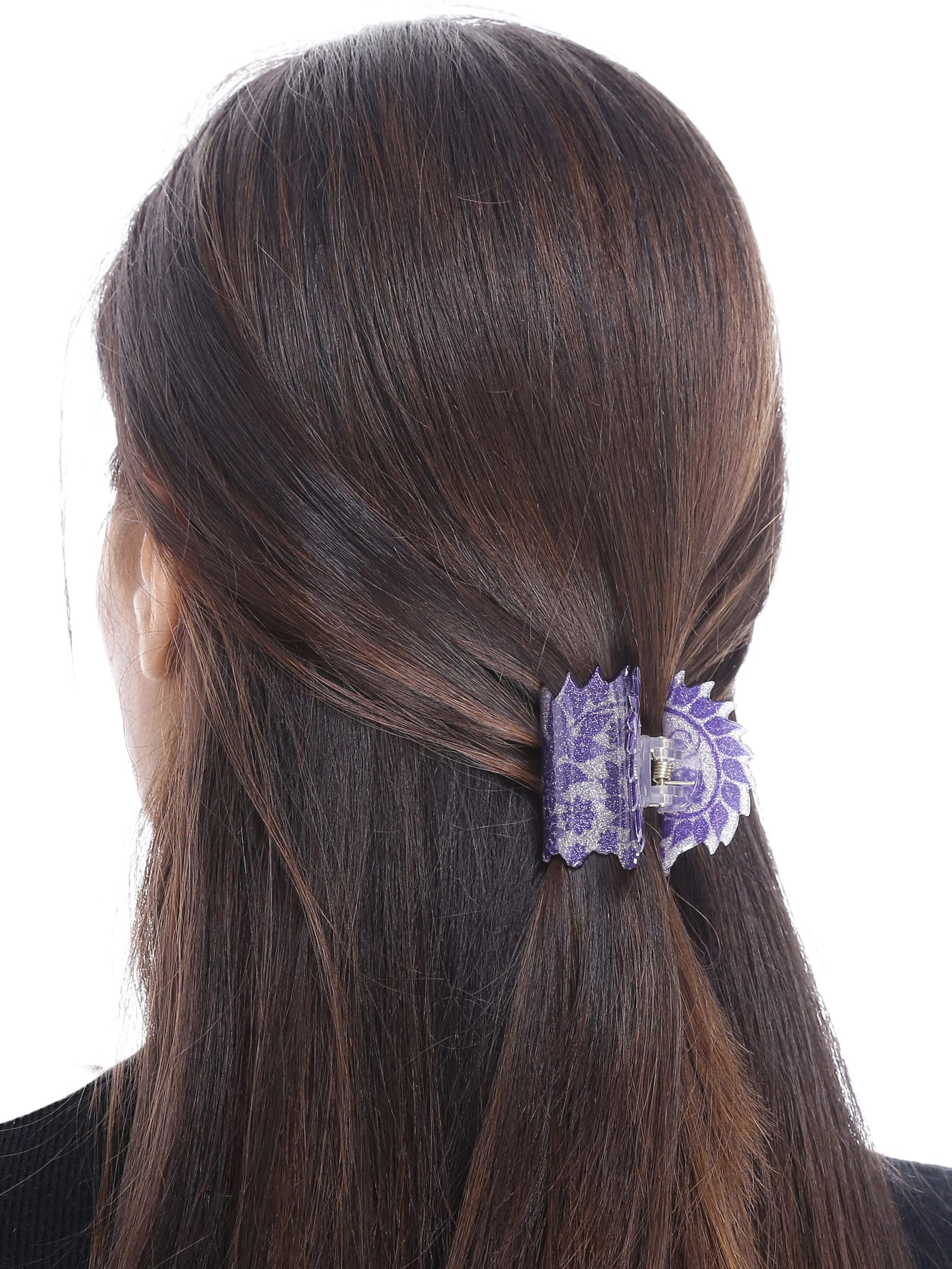 - Multicolor Floral pattern claw clip. Use them to hold up sections while styling hair, create a half-up 'do, or pull all of your hair back, these clips are quite versatile.