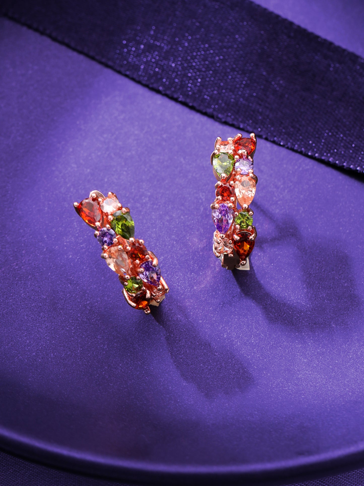 Embrace a vine of radiating flowerets that gracefully adorn your ears. The exquisite arrangement of colorful Swiss Cubic Zirconia creates a whimsical and eye-catching look, perfect for any occasion. Whether you're dressing up for a special event or adding flair to your everyday style, these earrings bring a beautiful pop of color to your ensemble.