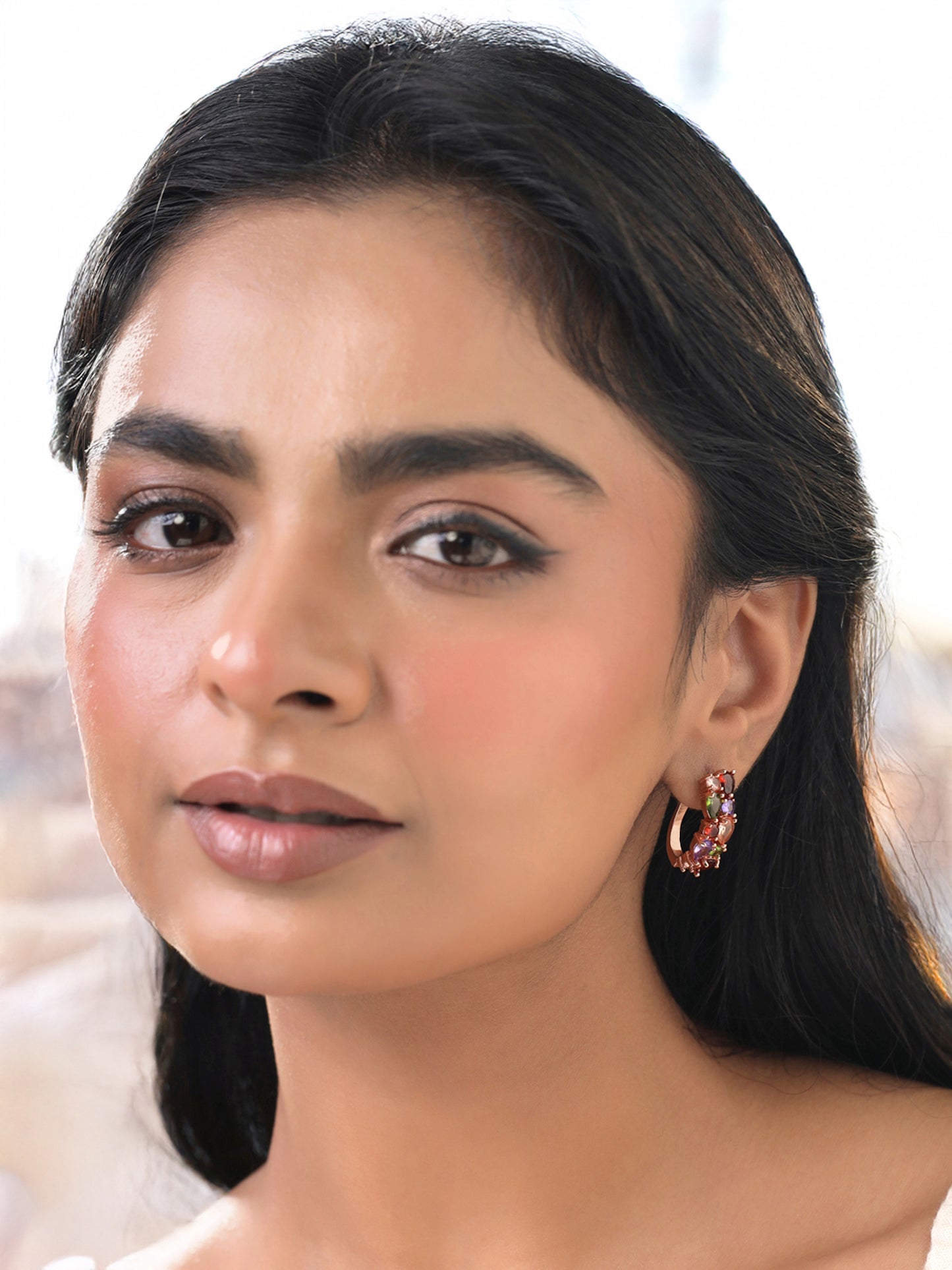 Clip On Earrings for Women Multicolor Swiss Zircon Rosegold Plated Crystal Clip-On Earrings for Women and Girls.