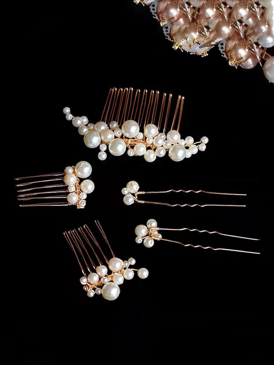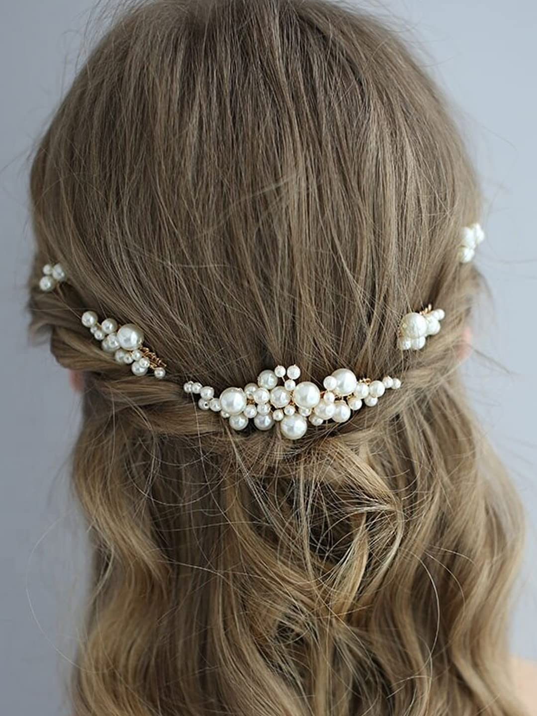 - White Pearl studded bridal hair comb pin for women hair accessories for women stylish hair decoration. Classic and versatile style. Just need to insert the comb in your hair and it can stay firmly on your head without easily falling off, very easy to use. You can use bobby pins too for firm hold