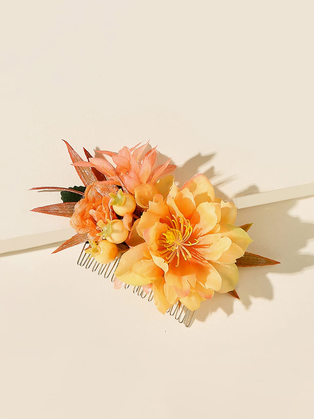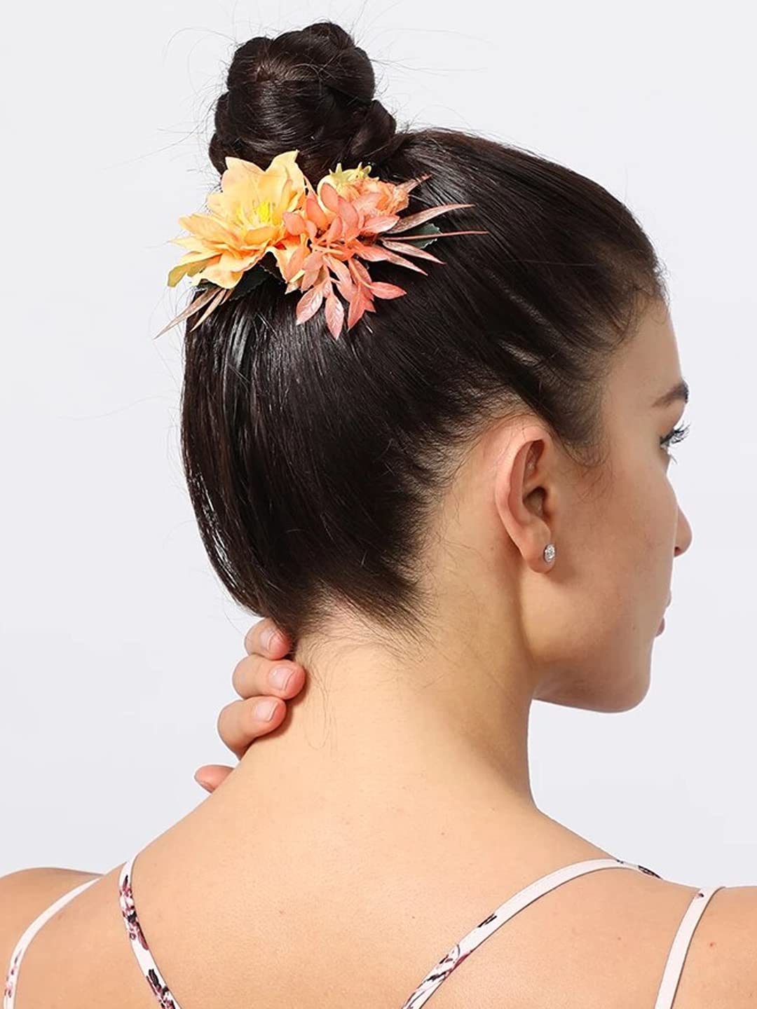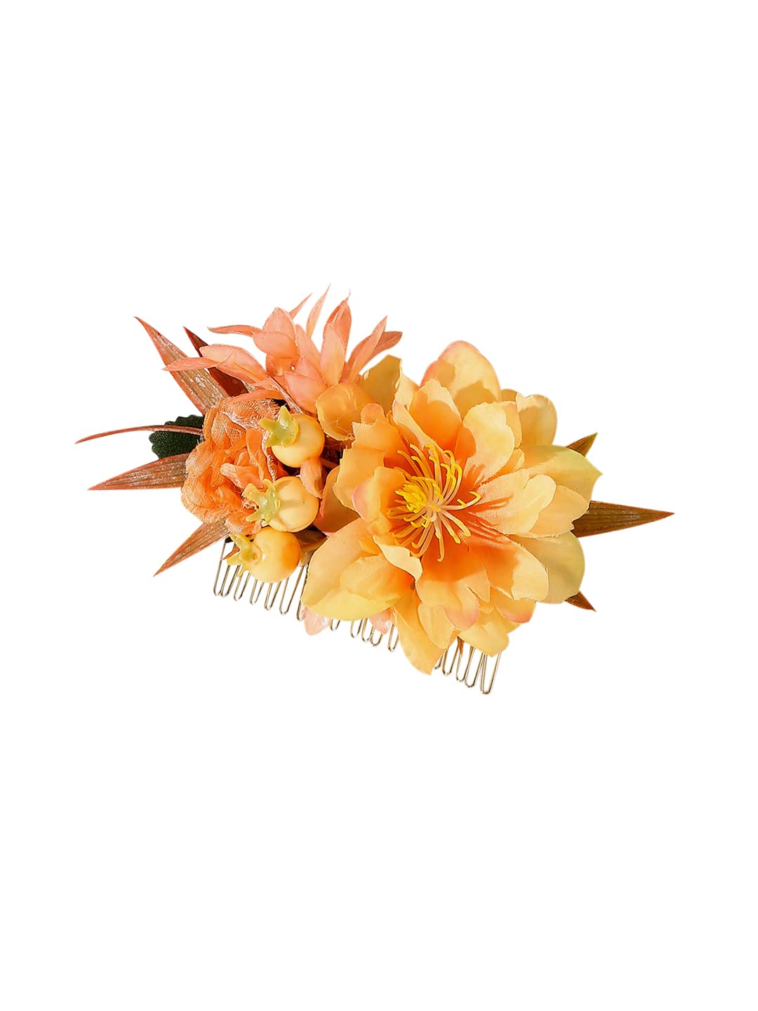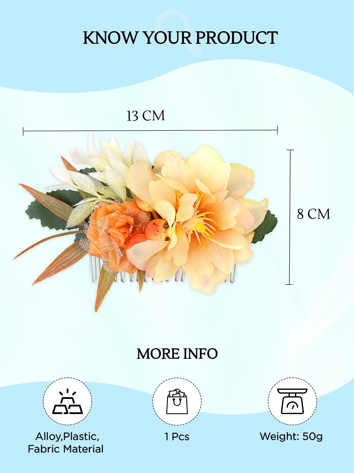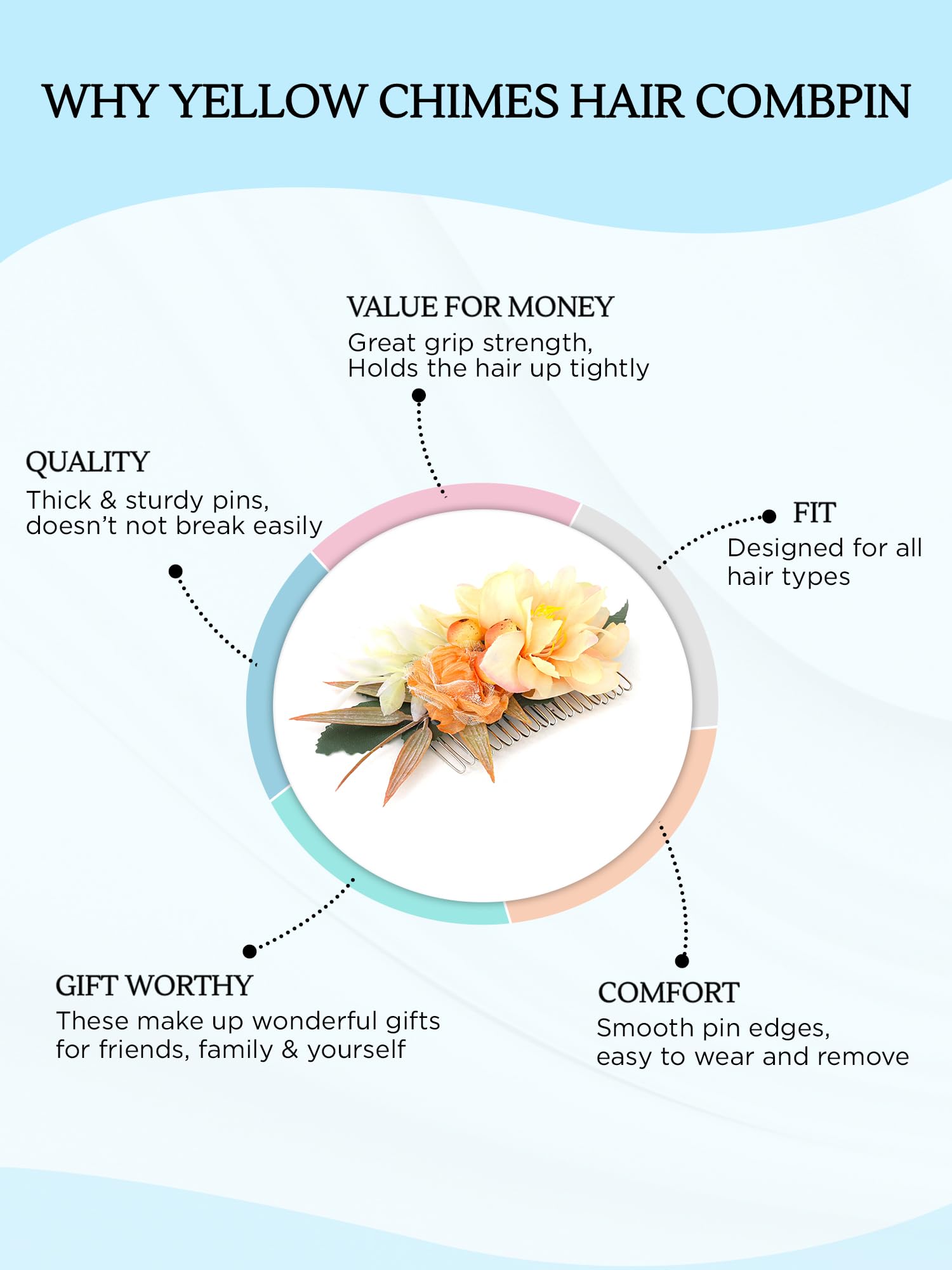 Yellow Chimes Comb Pin for Women Hair Accessories for Women Floral Hair Pins for Women Artificial Floral Hair Pin Bridal Hair Accessories for Wedding Side Pin/Hair Clip/Juda Pin Accessories for Women