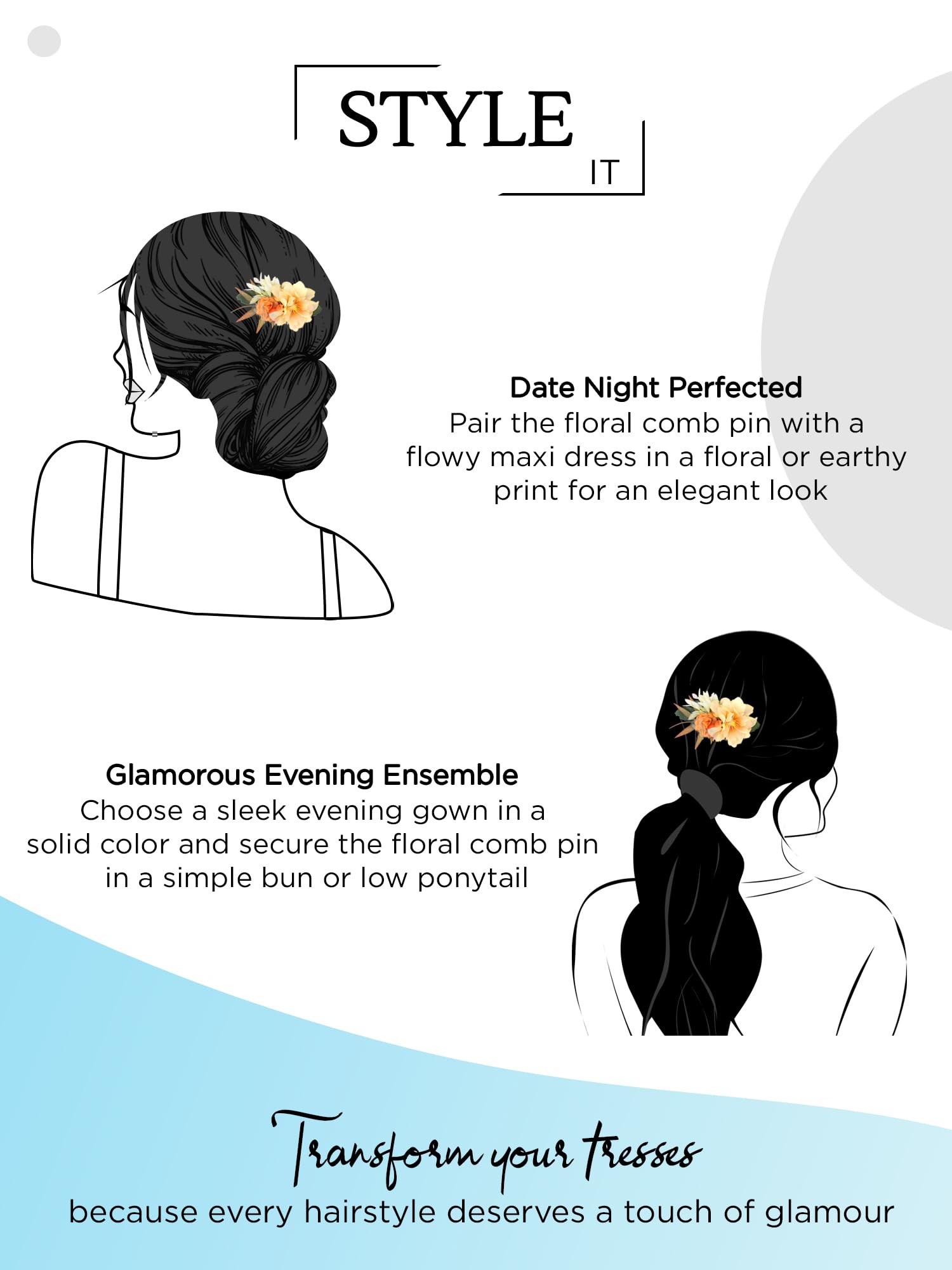 - Floral Designed hair comb pin for women hair accessories for women stylish hair decoration accessories for bridal wedding. Classic and versatile style. Just need to insert the comb in your hair and it can stay firmly on your head without easily falling off, very easy to use. You can use bobby pins too for firm hold