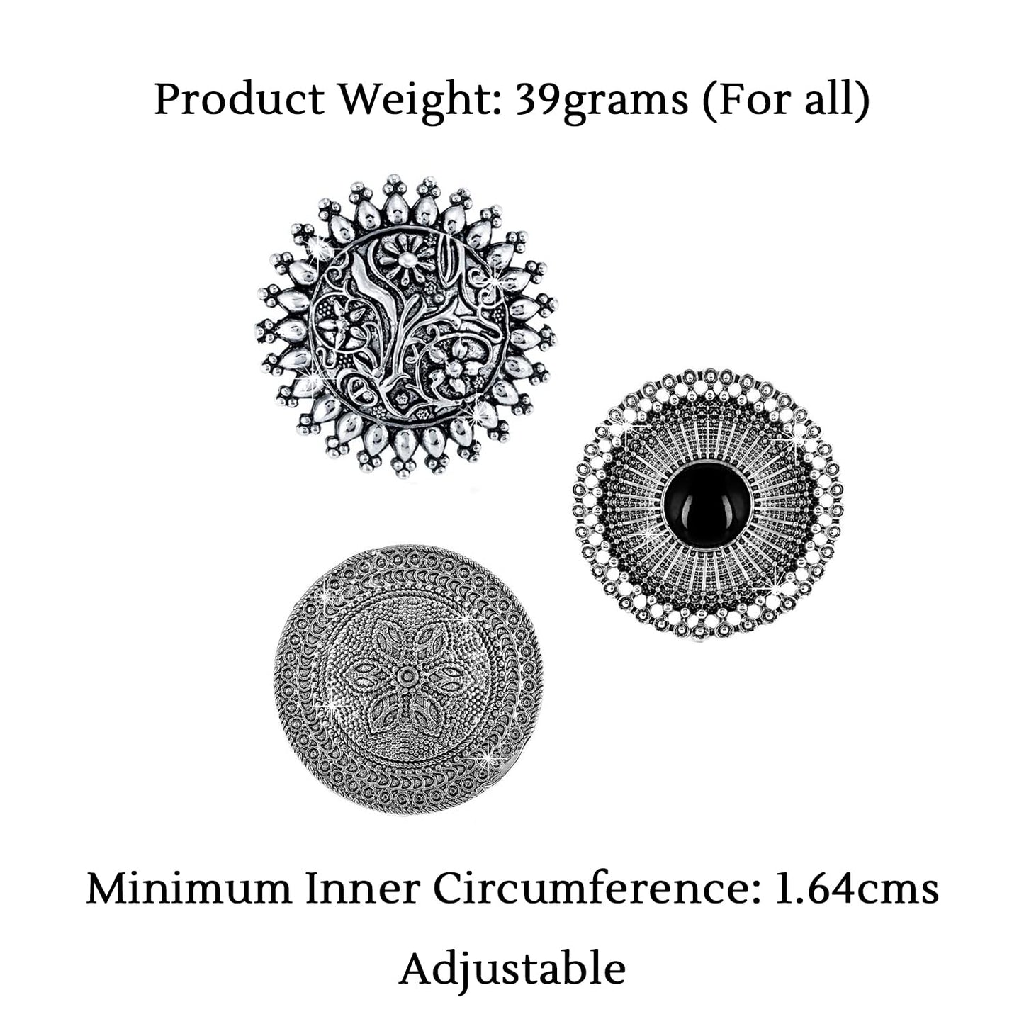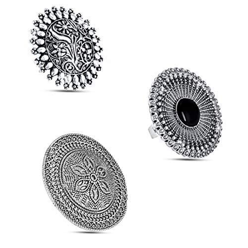 - Adjustable Silver Oxidized Traditional 3 Pcs of Combo Oxidised Ring of Craftsmanship, These Rings can be clubbed with any of your Favourite Jewellery Sets. Our Product is perfect for valentines Anniversary Birthday gift for girlfriend and Wife.