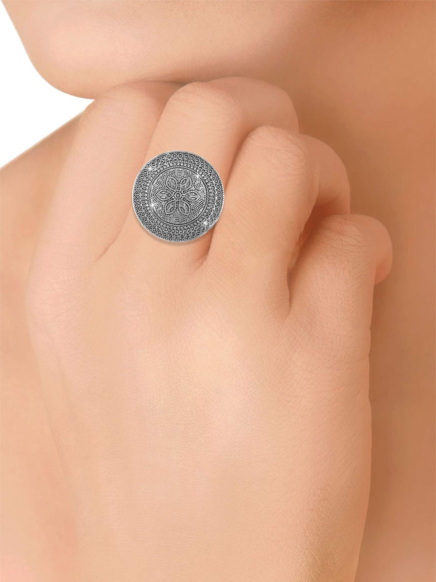 Embrace the charm and sophistication of the Yellow Chimes Oxidized Silver Cocktail Rings and make your mark wherever you go.