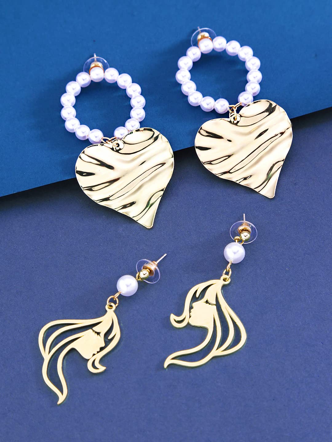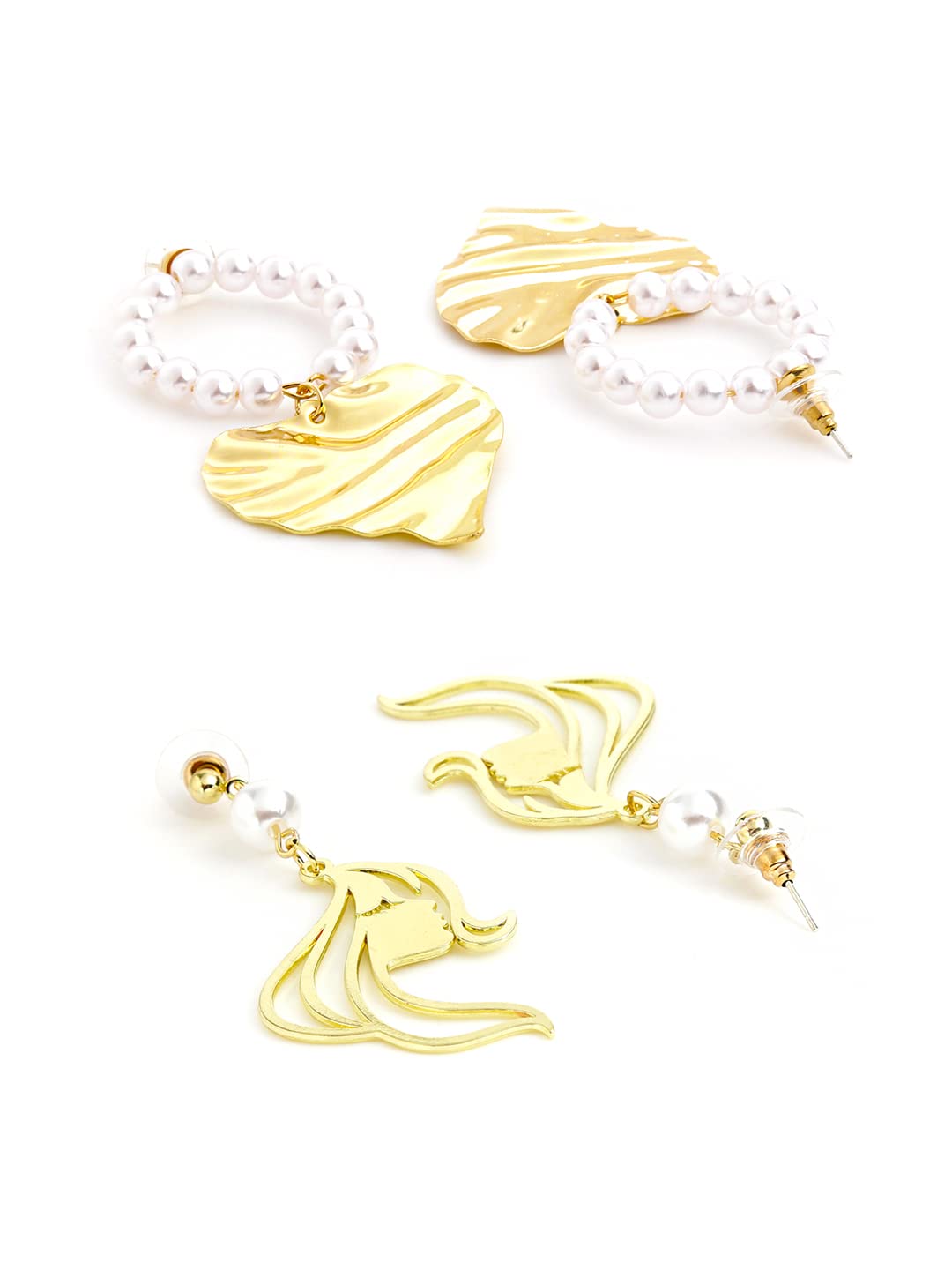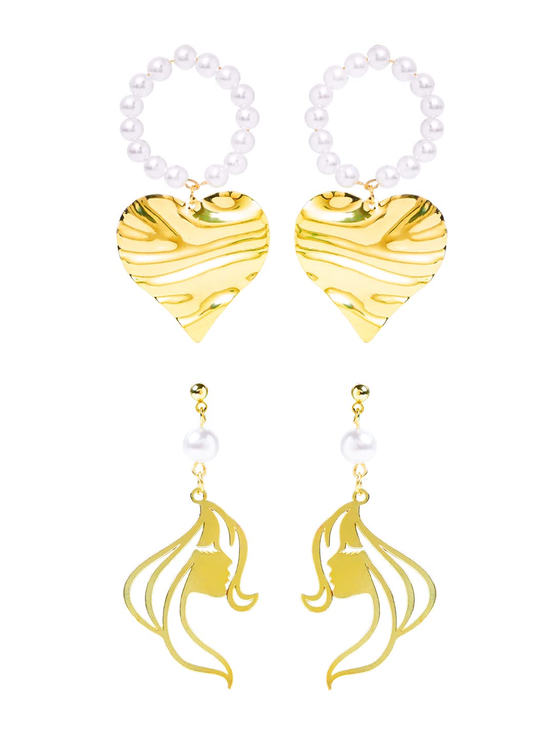 Yellow Chimes Combo of 2 Pairs Latest Fashion Gold Plated Pearl Leaf Face Design Drop Earrings for Women and Girls, Medium (YCFJER-FACEDGN-C-GL)