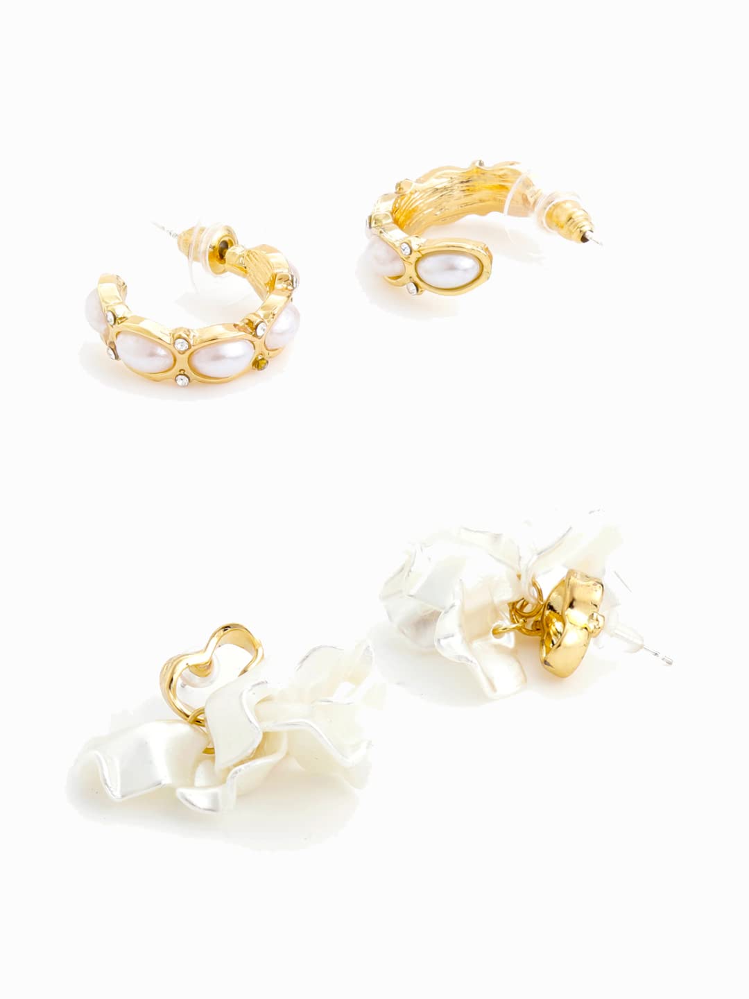 - Combo of 2 Pairs Stylish Latest Fashion Design Gold Plated Pearl Design Drop Earrings. Combo of 2 Pairs Stylish Adorable golden drop Earrings, These designer earrings will complement any Occasion Formal/ Casual/ Party Wear.