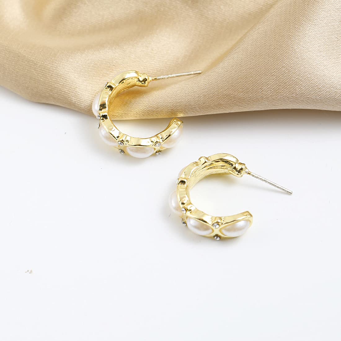 Yellow Chimes Combo of 2 Pairs Latest Fashion Gold Plated Floral Pearl Design Drop Stud Earrings for Women and Girls, Medium, YCFJER-02PRLDGN-C-WH