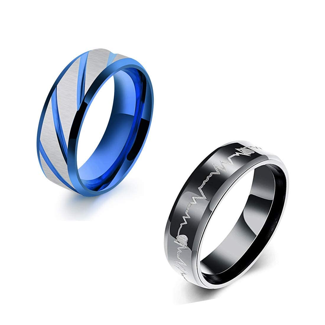 Yellow Chimes Combo of 2 Pcs Engraved Heartbeat Love Message Stainless Steel Blue & Black Rings for Women and Men Combo 2 Pcs Classic, Weighty and Durable, Engraved Heartbeat Love Message,Blue Strips band ring excellent scratch resistant performance. suitable for Men & Women / Unisex / Girls. Daily / Party / Casual Wear Fashion Jewellery PLATING - IPS process of plating makes it never fading of color, and keeps the shine. PREMIUM QUALITY: Pure surgical stainless steel is used to make this product, which doesnt cause any harm to skin. Nickel free and Lead free as per International Standards. No harm to health. Perfect Best suitable for Men.Size is US 9, which in 1.9 CM of inner circumfrence. GIFT FOR Him/Women! - Ideal Valentine, Birthday, Anniversary gift for someone you ? LOVE ?. With our packaging Box, you do not need to opt-in for any additional gift packaging. The product comes in a beautiful Elegant Ready-to-Gift Box.