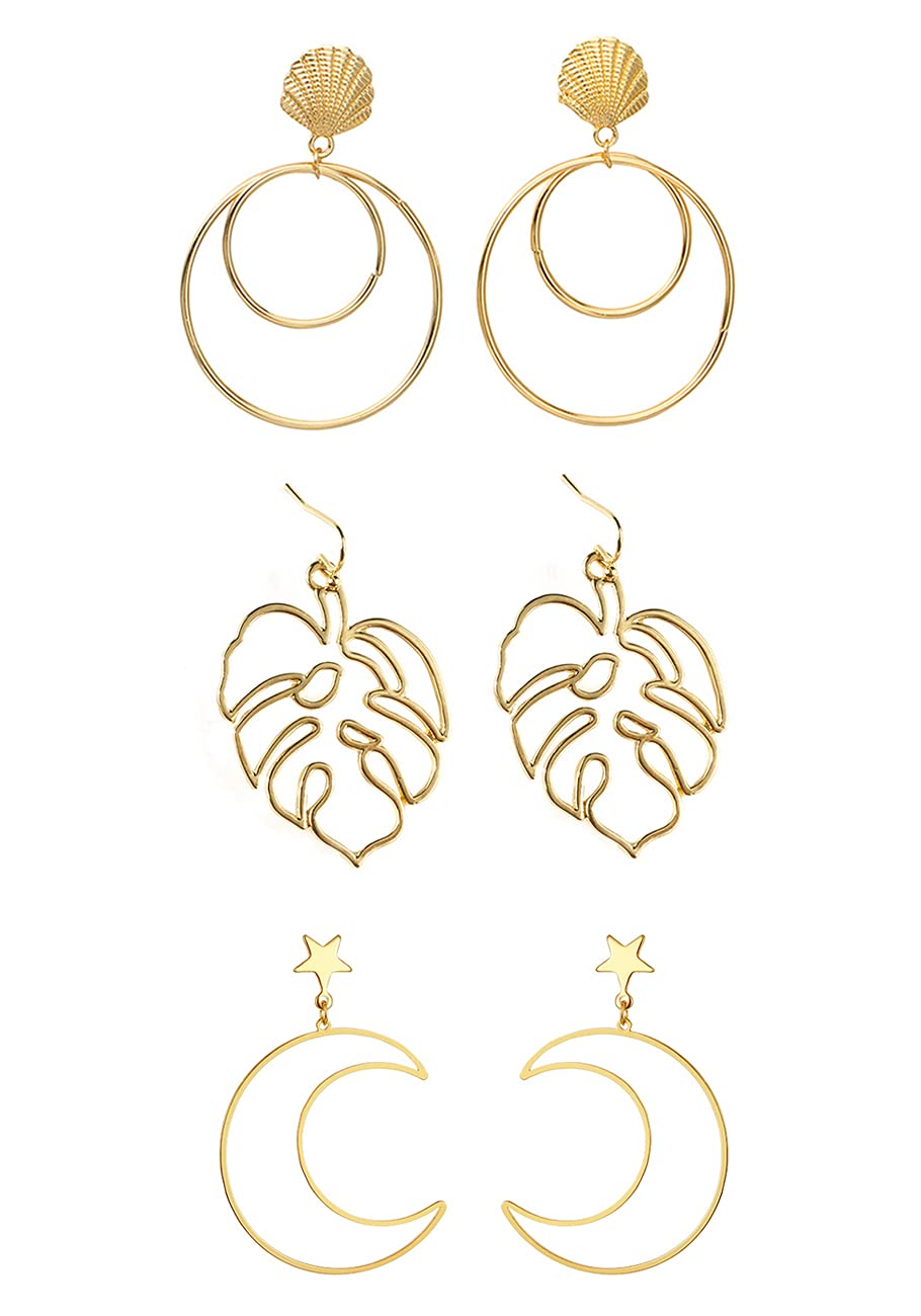 - Stylish Latest Fashion Design Gold Plated geometric Design drop Earrings. Combo of 3 Pairs Stylish Adorable golden dangle Earrings, These designer earrings will complement any Occasion Formal/ Casual/ Party Wear