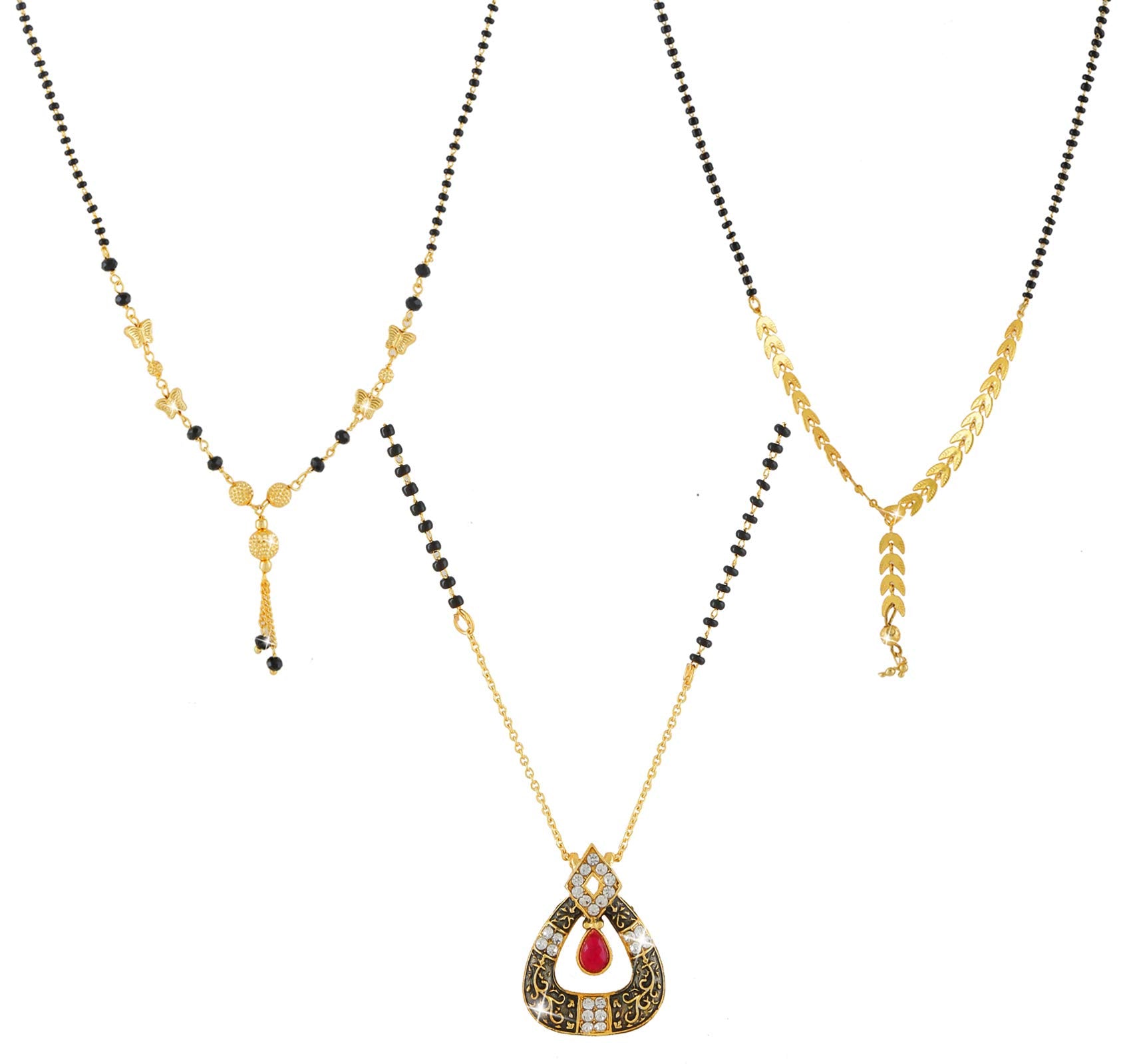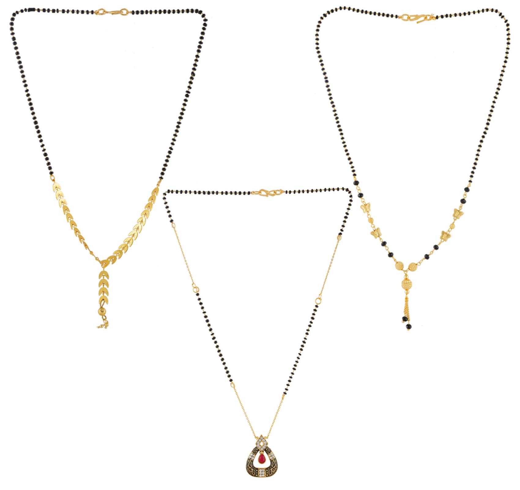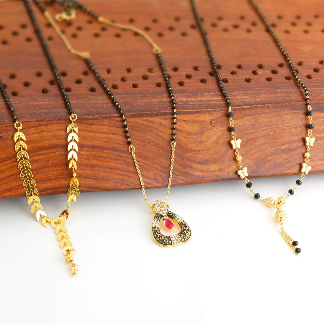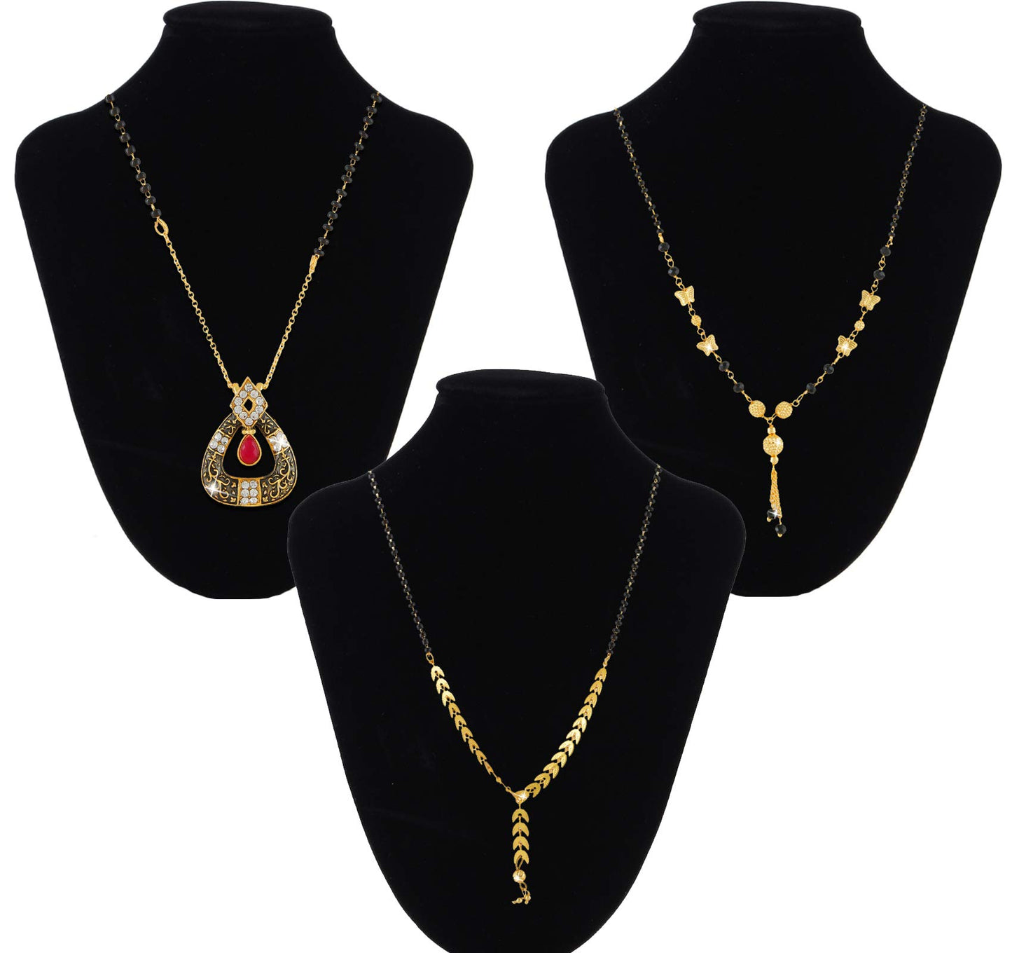 - Style: Combo of 3 Pcs Ethnic & Stylish Looks, Traditional Gold Plated Black Beads Mangalsutra Pendant Necklace Stunning and Preciously Suitable Looks for all Kinds of Occasions- Party / Festival / Daily.