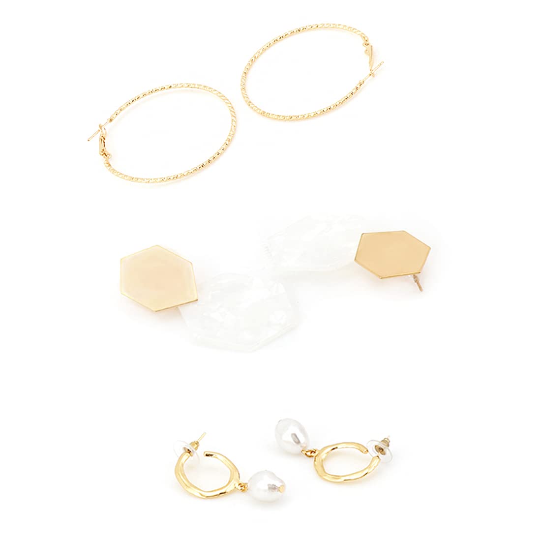 - Skin Friendly-: Lead & Nickel Free in compliance with all International Requirements, Earrings Combo - Six pairs of Gold Plated pearl and Crystal Stud Hoops.