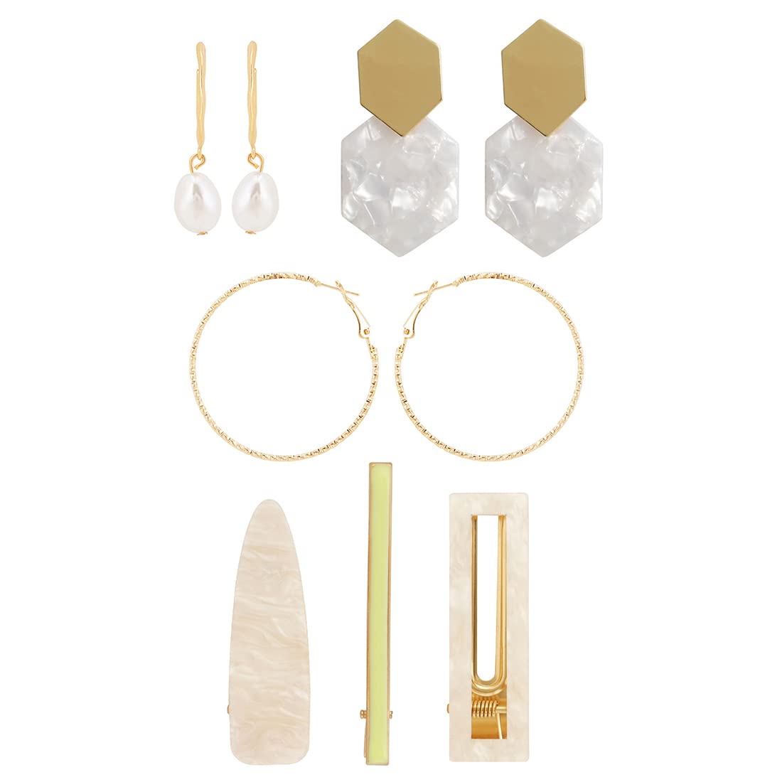 - Stylish Variety: Enjoy a trendy collection of 6 pairs that combine the beauty of crystal and pearl with a classic gold-plated finish.